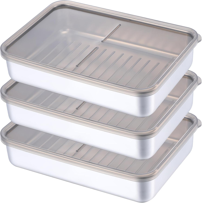 Gama largă de aplicații: această cutie de tăiere la rece din oțel inoxidabil nu numai că poate stoca slănină, ci și alte alimente care trebuie păstrate proaspete, cum ar fi: tăieturi reci, pâine, fileuri de pește, fructe de mare, delicatese, felii de legume proaspete etc. Un sigiliu bun poate păstra ingredientele proaspete în frigider.
