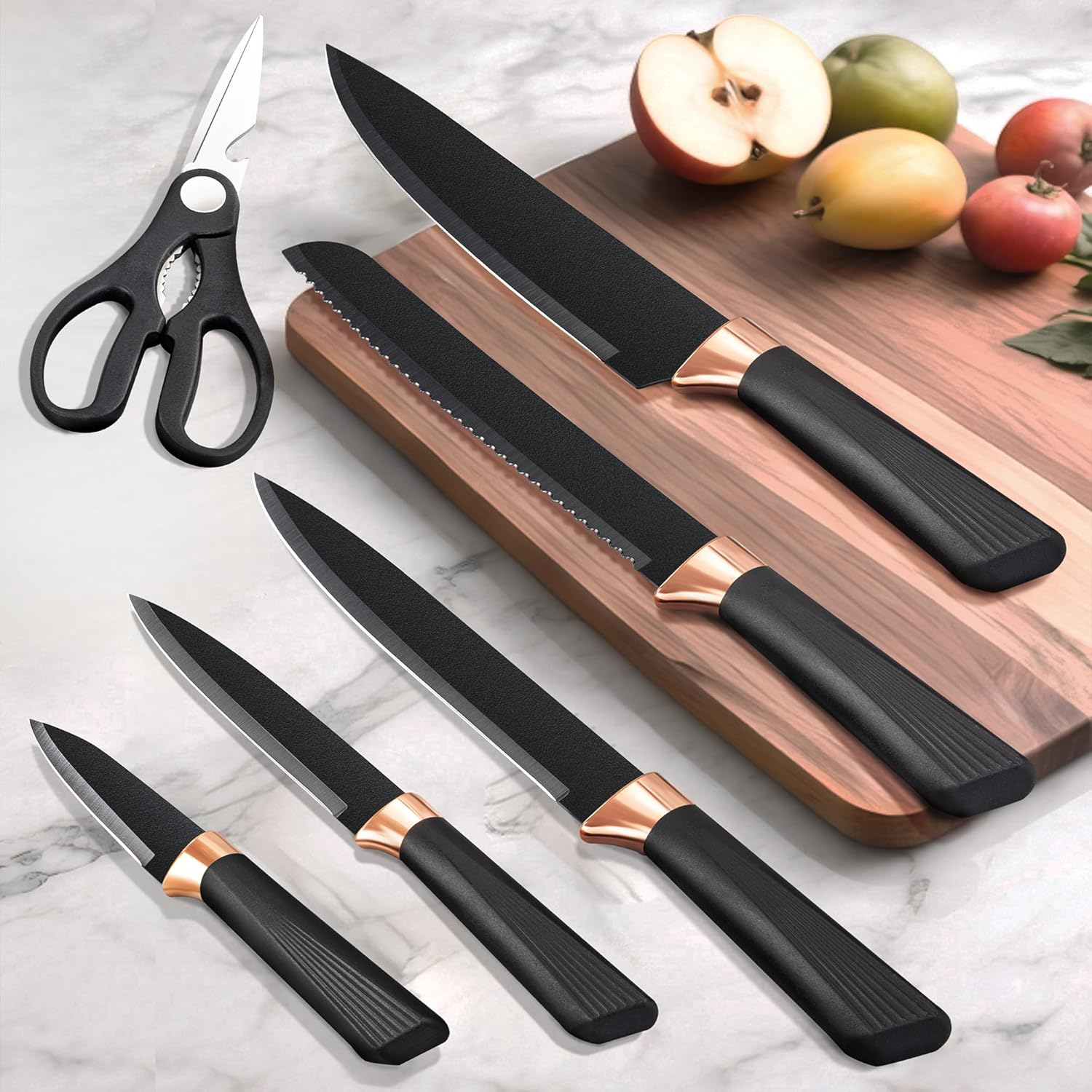 Set de cuțite de bucătărie 6 piese din oțel inoxidabil cu suport asezare