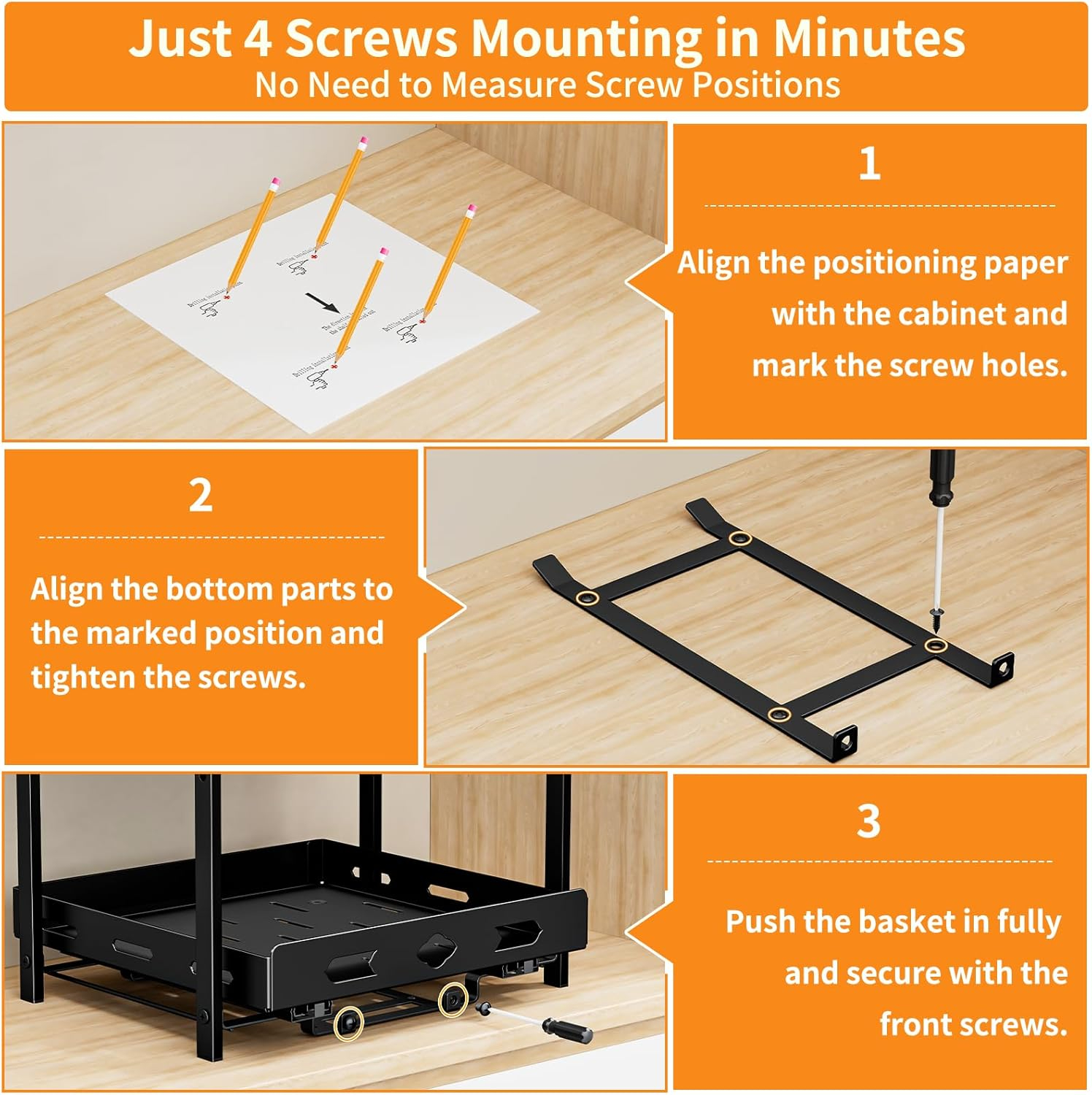 • 🥫[Easy to Assamble and Save Space]: Datorită simplăa asamblare și a instalării, puteți instala rapid raftul nostru de depozitare Slide Out Drawer în dulapul dvs. de bucătărie. În timp ce economisiți spațiu valoros, bucătăria dvs. poate fi încă îngrijită și ordonată. Comandă-l acum, croitor - făcut pentru cabinetul tău pentru a-l face mai perfect!