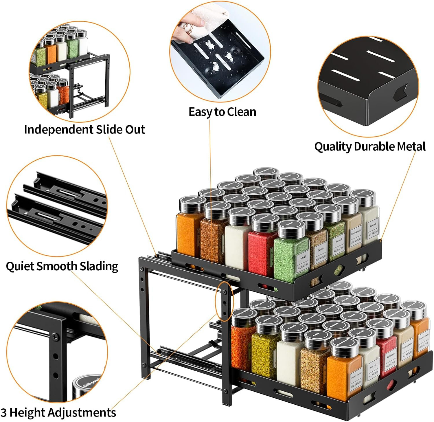 • 🥫[Organizația Perfectă, Înălțime reglabilă]: Suportul de condimente de la Mayzolop este o soluție perfectă pentru puțurile dulapului de bucătărie. Are o funcție foarte ajustată și se poate adapta cu ușurință la dimensiunea diferitelor dulapuri și la dimensiunea condimentelor și a sticlelor de condimente. Sertarul solid din aluminiu și sistemul de patinaj ușor al rulmului de rulare fac ca condimentul și sticla de condimente să nu mai fie dezordonate.