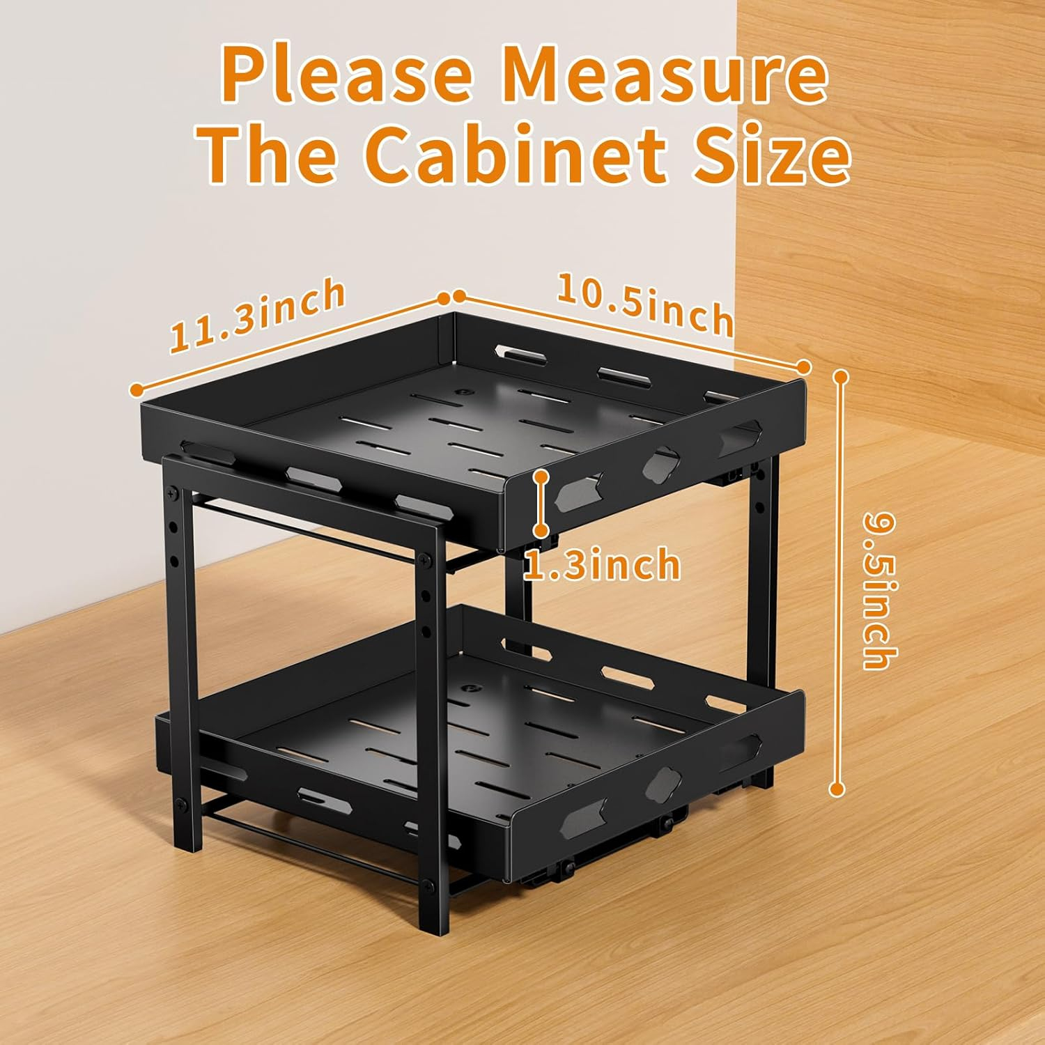 Rafturi extensibile pentru condimente, 2 nivele, negru, 27.5x29.8x23.2 cm