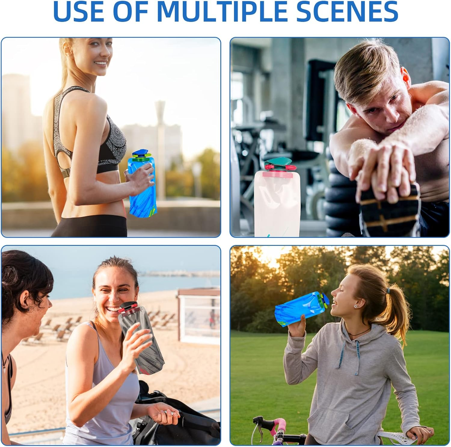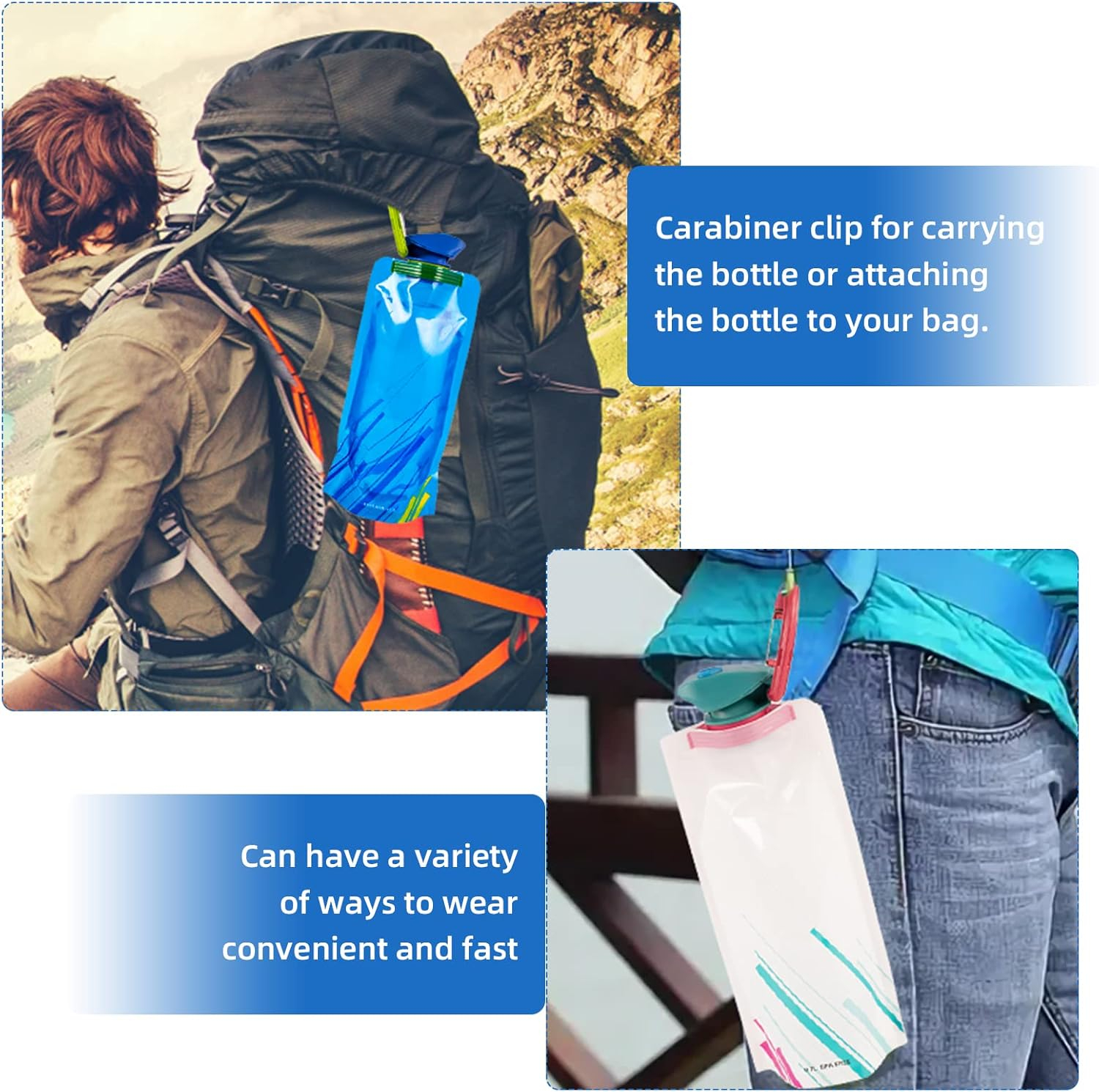 1. Folosește materiale de înaltă calitate și flexibile. Sticlele de apă sunt concepute pentru a sta în picioare atunci când sunt pline și pot fi pliate, rulate sau așezate plat.2. Carabina inclusă face foarte ușor și convenabil de transportat și depozitat.