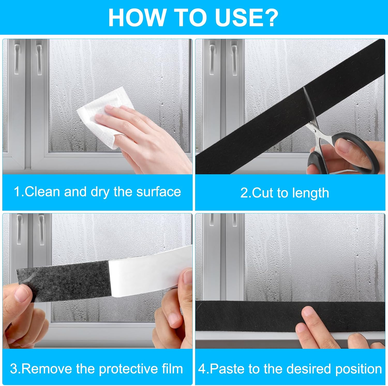 Material de calitate: materialul de lână utilizat în aceste absorbante de condensare a ferestrelor este foarte absorbant, rezistent la uzură, cu densitate mare și izolați termic, cu design din spate adeziv pentru o aderență puternică, care poate fi utilizată pentru a absorbi condensul ferestrei și pentru a menține geamul uscat.