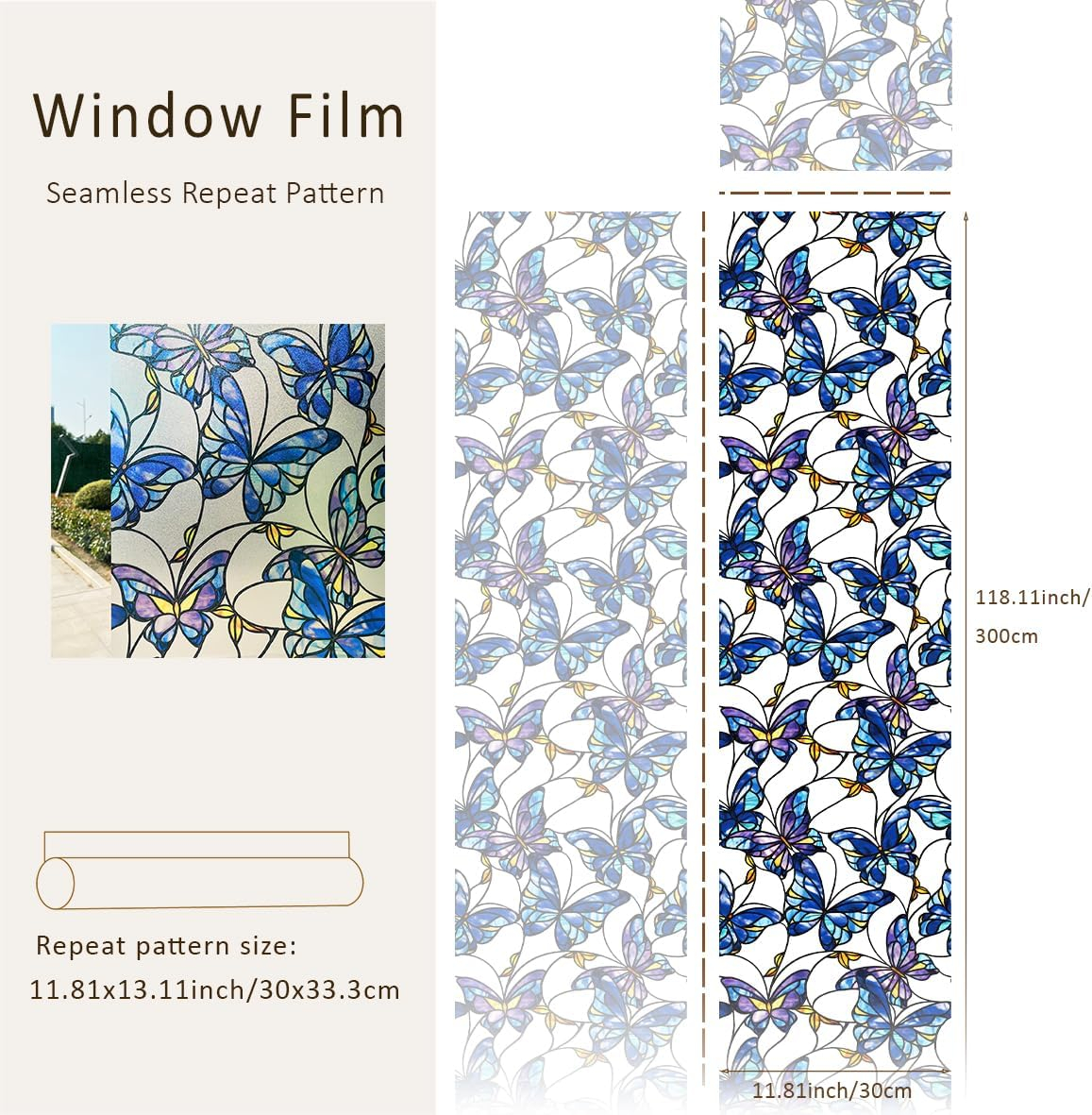 • Dimensiune: Această filmare a ferestrei este 11.81"X118".11/30X300CM și conține 1 bucată. Dimensiunea modelului de repetare a filmului este de 11.81"X13.11/30X33,3CM. Designerii ChicSkin iau în considerare, de asemenea, cererea clientului și oferă diferite dimensiuni în magazinul nostru.
