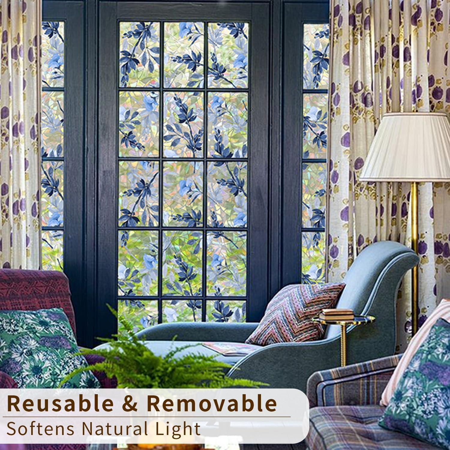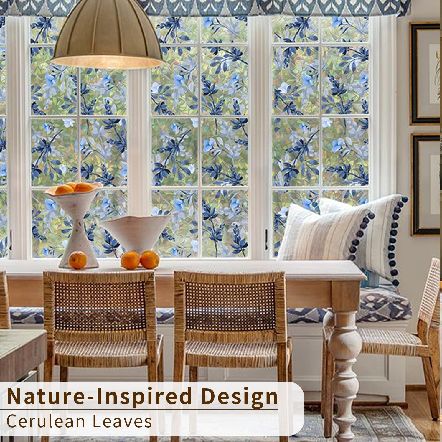 Filmul de vitralii: folosește o gravură 3D avansată pentru un efect curcubeu fascinant atunci când lumina soarelui strălucește, creând o atmosferă fermecătoare. De asemenea, poate împiedica păsările sau animalele de companie să se lovească de sticlă.