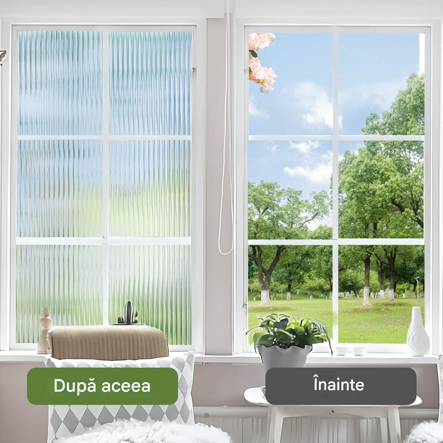 Protecție UV. Perictură de fereastră opacă de ridicare blochează 84% din razele UV-A și 99% din razele UV-B, reducând astfel radiațiile la nivelul corpului și pielii; reducând riscul de decolorare a mobilierului cauzat de lumina soarelui. Filmul de fereastră se poate izola în timpul iernii și căldurii în timpul verii.