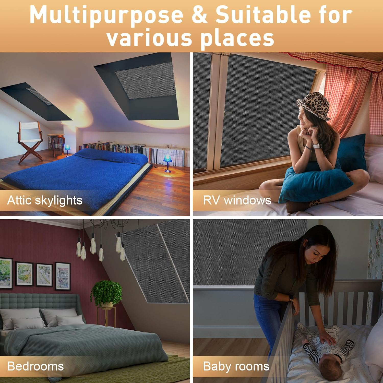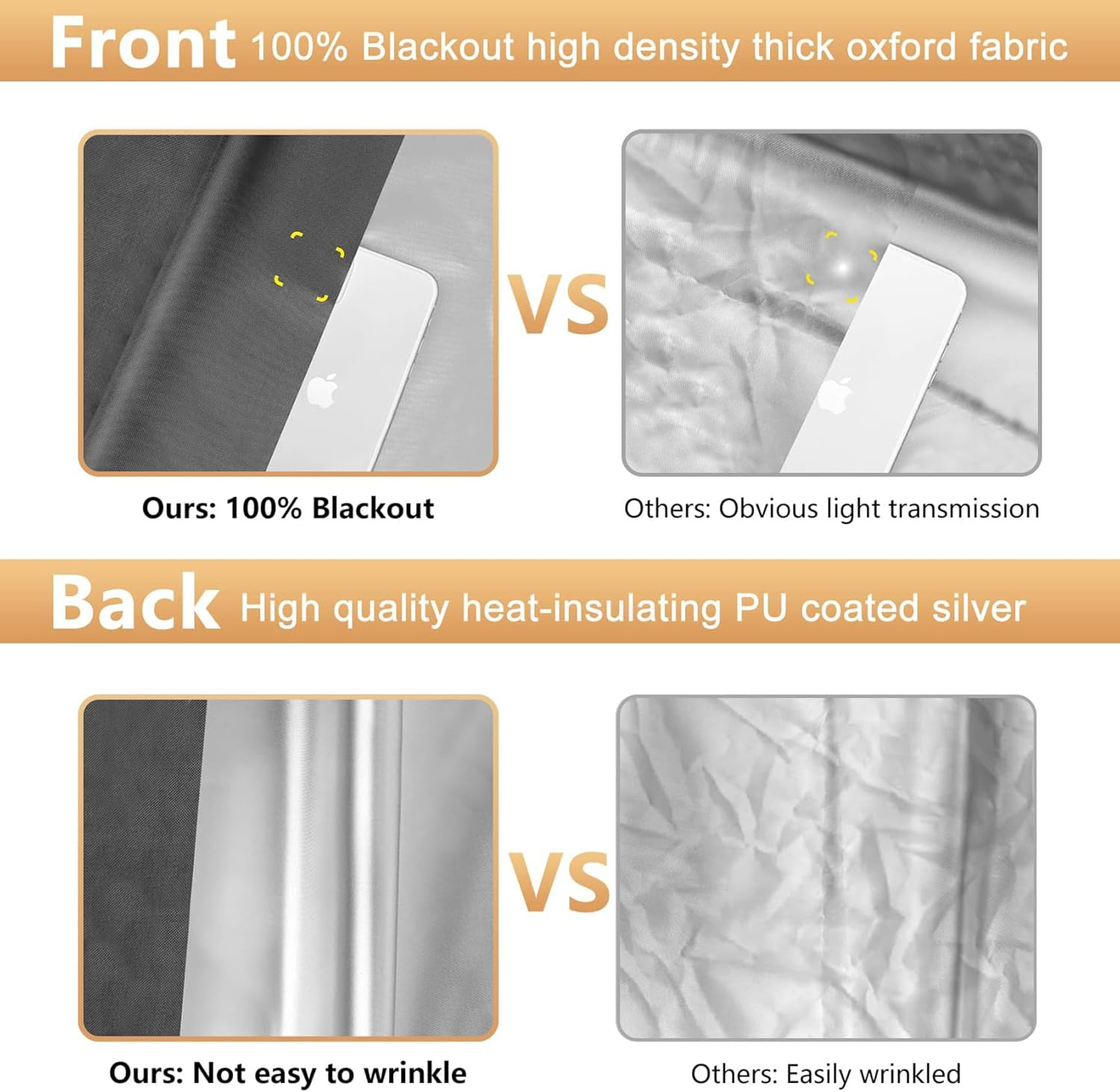Perdelele portabile de întrerupere de curent RUseeN sunt realizate din materiale groase, robuste, dar moi, care pot bloca 100% lumina soarelui și razele UV. Datorită stratului special de argint gri din spatele orburilor de culoare; blocați toată lumina soarelui și reduceți căldura, creați o atmosferă de dormit neagră cu jet confortabil pentru dvs., îmbunătățiți-vă calitatea somnului.