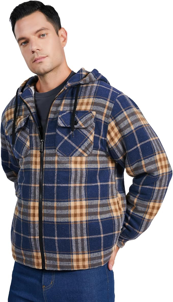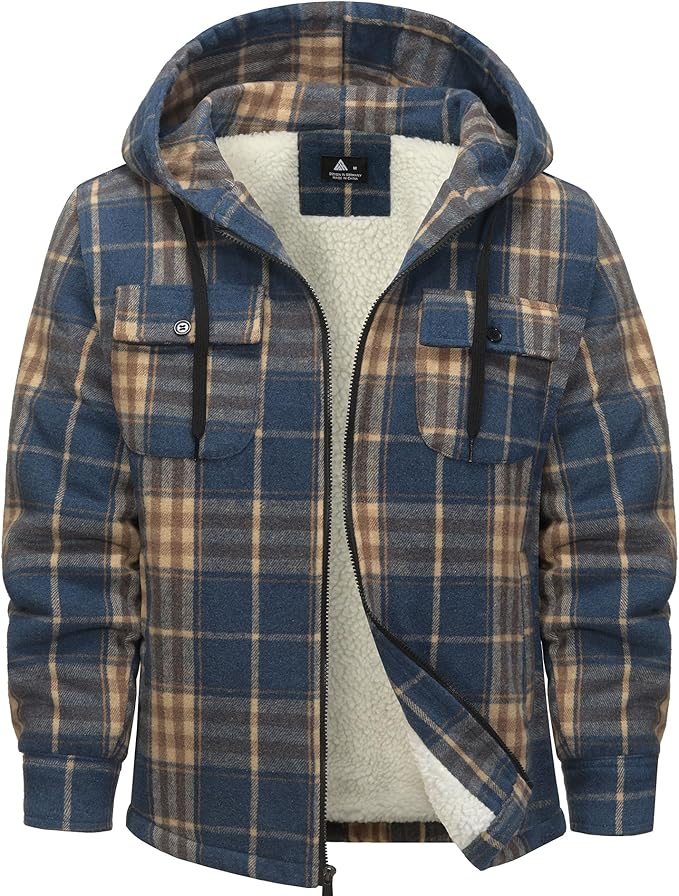 Căptușeala matlasată și groasă din lână retine temperatura corpului în timpul iernii. Designul în carouri face cămașa mai la modă.
