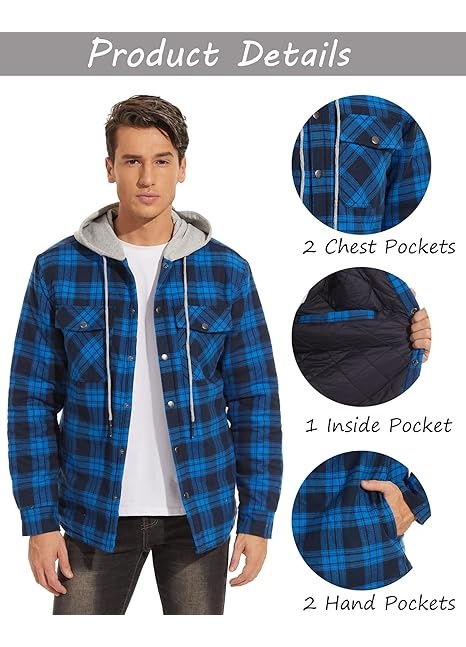 Căptușeala matlasată și groasă din lână retine temperatura corpului în timpul iernii. Designul în carouri face cămașa mai la modă.