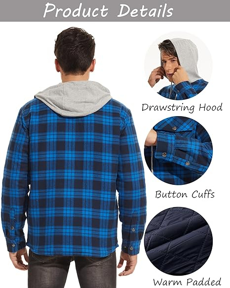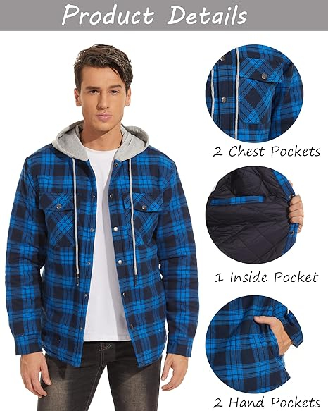 Căptușeala matlasată și groasă din lână retine temperatura corpului în timpul iernii. Designul în carouri face cămașa mai la modă.