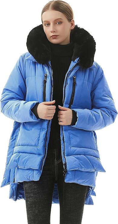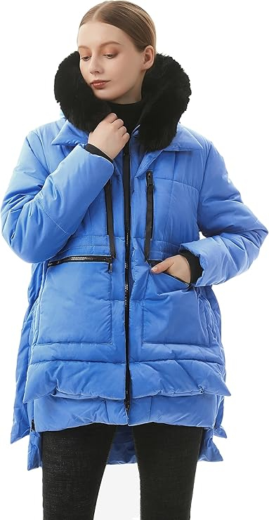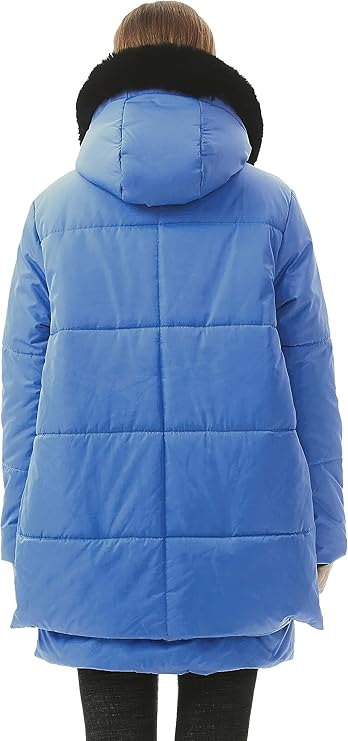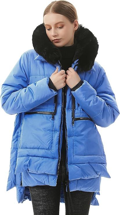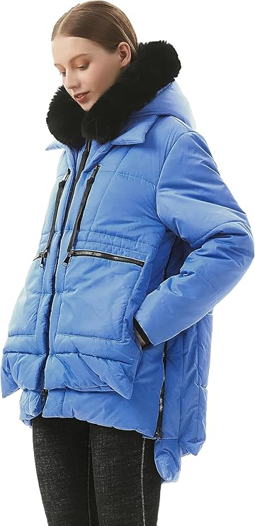 Design modern si versatil – gluga cu guler de blana artificiala detasabil, tiv cu fermoar lateral pentru ajustarea latimii si pliuri elegante pentru un aspect feminin si stilat.