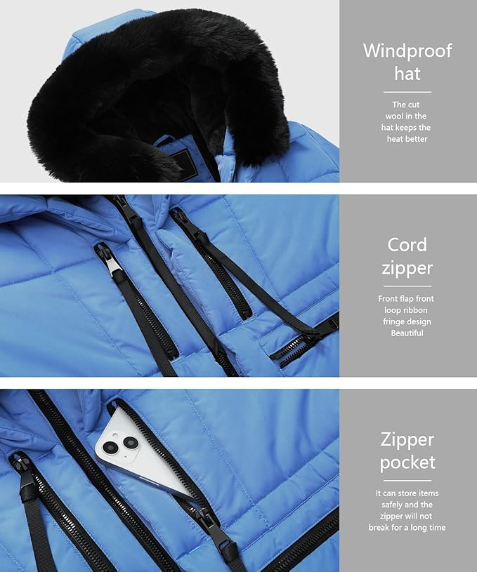 Buzunare multiple – 2 buzunare mari cu fermoar, 2 buzunare la piept si 2 laterale, ideale pentru telefon, chei, portofel sau pentru a-ti mentine mainile calde.