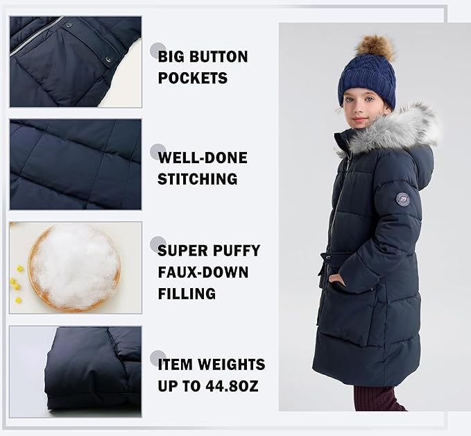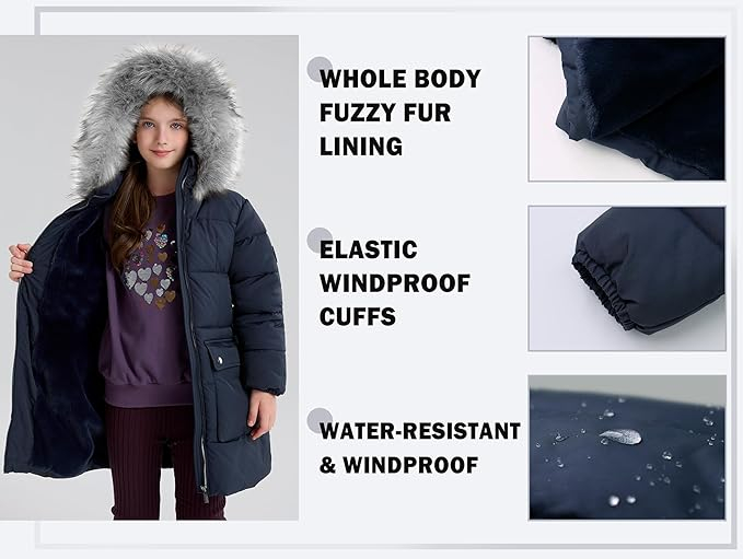 • Mai mult CĂLDURĂ - Haina groasă parka pentru copii include o glugă mare de blană falsă căptușită pentru a vă menține capetele mari pentru copiii mei calzi pe vreme rece. Și copiii falx down gated de zăpadă au manșete elastice cu nervuri și tiv care se potrivesc încheieturii mâinii și trunchiului în mod corespunzător