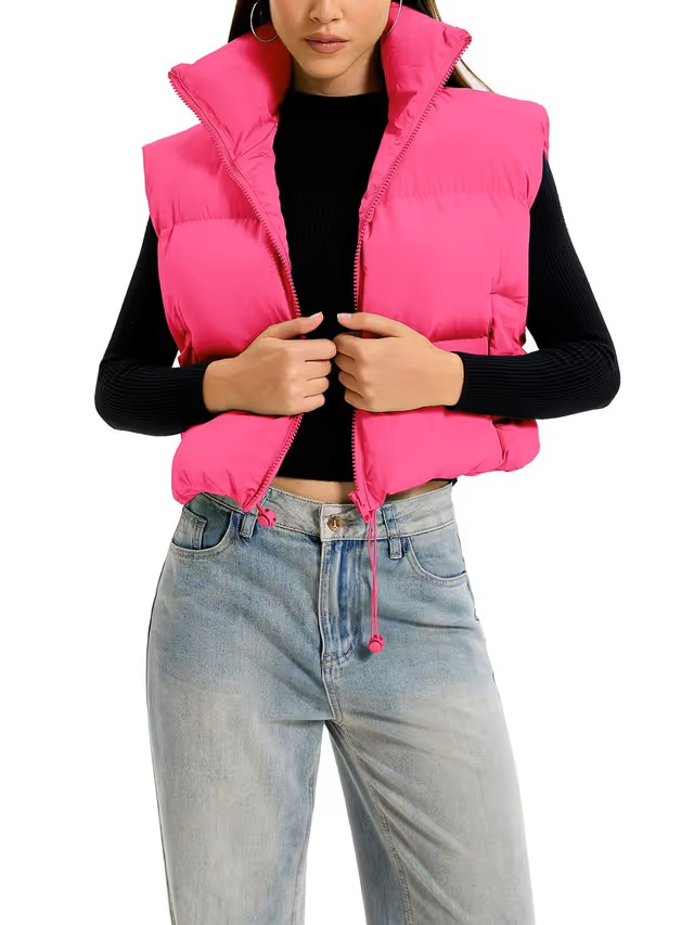 vesta scurtă de puf tăiat pentru femei este pliată și compactată în ambalaj, atingeți ușor vesta cu mâinile, apoi atârnă-o la soare timp de câteva ore, va fi din nou pufoasă. Design OYIGELZ Feature: top scurt de rezervor de iarnă tăiat pentru femei cu guler de stand-up, fără mâneci, reglabil, șaor cu caracter reglabil și fermoar complet. Colotarea modei de celebritate pe internet: vesta tăiată scurt și scurt pentru femei merge perfect cu cămăși cu mâneci lungi / pulovere / hanorace / coaci pentru un aspect casual care vă menține confortabil și cald. Jachetele vestile au fost întotdeauna un stil la modă, care poate fi ușor combinat cu toate ținutele tale. Ocazie potrivită: vesta pentru femei fără mâneci este perfectă pentru multe ocazii, cum ar fi drumeții, ciclism, alpinism, școală, muncă, cumpărături, bucurați-vă de căldură fără a adăuga vrac. Sezonul adecvat: vestă de iarnă la modă, fără mâneci, ușoară, cu căptușeală termică