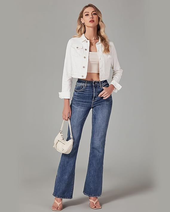 Puteți împerechea această jachetă denim de camion elastică cu colanți cu talie înaltă sau blugi pentru alegerea zilnică sau peste o rochie pentru seara întâlnirii. Femei de jachetă de blugă de camionagiu, haine de primăvară pentru femei, jachetă din denim de primăvară pentru femei, jachete din denim pentru moda femeilor.