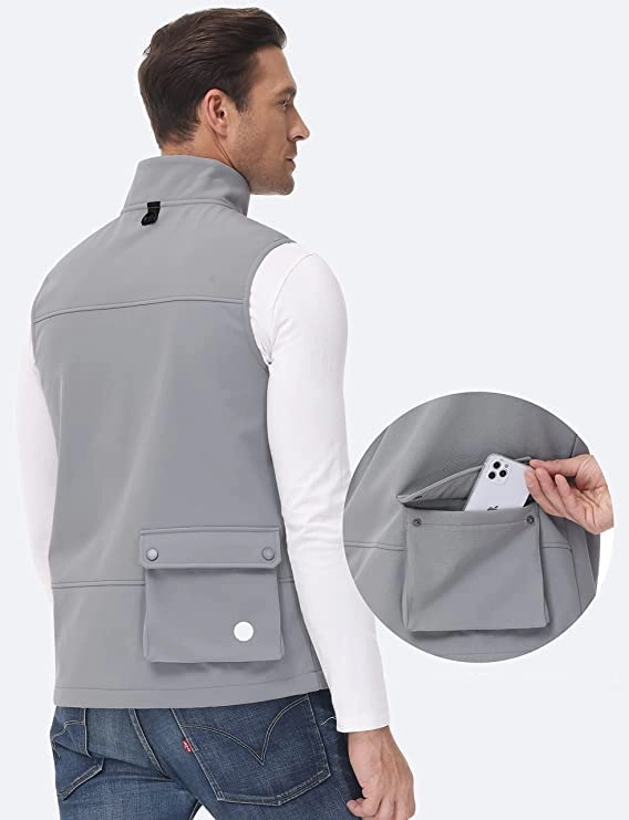 4 buzunare cu fermoar și 4 buzunare interioare adânci, convenabile pentru telefoane mobile, chei și alte elemente. Designul complet al vestei bărbătești o face ușor de pus și decolat.