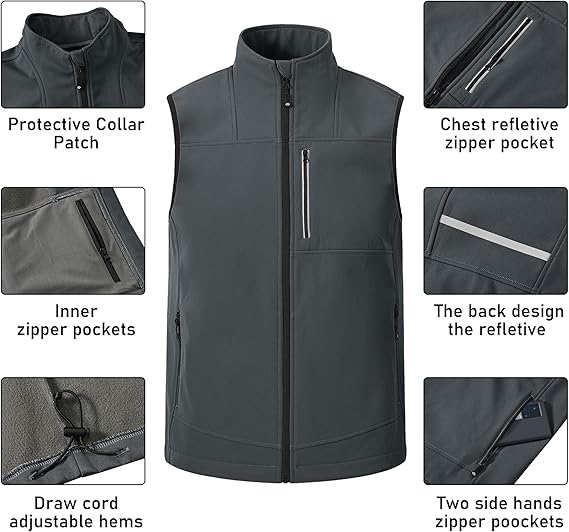 • 4 buzunare cu fermoar și 4 buzunare interioare adânci, convenabile pentru telefoane mobile, chei și alte elemente. Designul complet al vestei bărbătești o face ușor de pus și decolat.