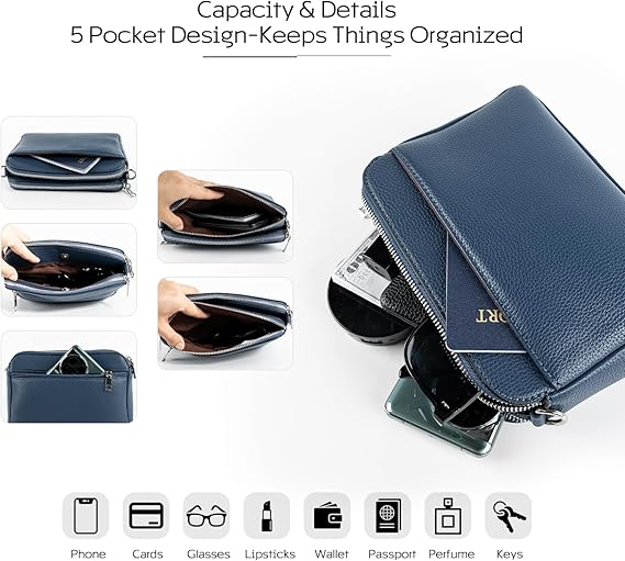 • VERSATILE & PRACTICE Această geantă de crossbody pentru femei are 3 buzunare cu fermoar și 2 buzunare medii cu instantanee magnetice. Deci, aveți întotdeauna bunurile stocate în siguranță și la îndemână. Perfect ca o geantă de cameră sau o geantă de umăr pentru femei / geantă de umăr pentru uz zilnic.