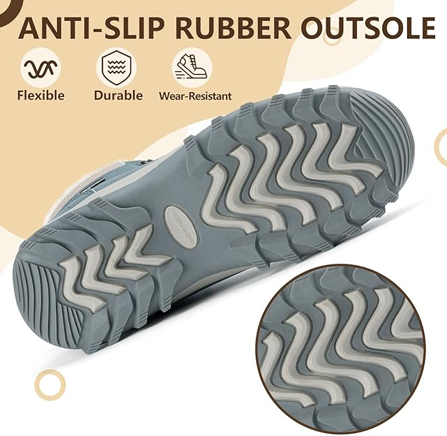 NON SLIP & DURABLE Talpa din material TPR de înaltă calitate este proiectată cu o bandă de rulare atentă care îmbunătățește tracțiunea. Potrivit pentru mers pe jos, drumeții sau camping în aer liber.