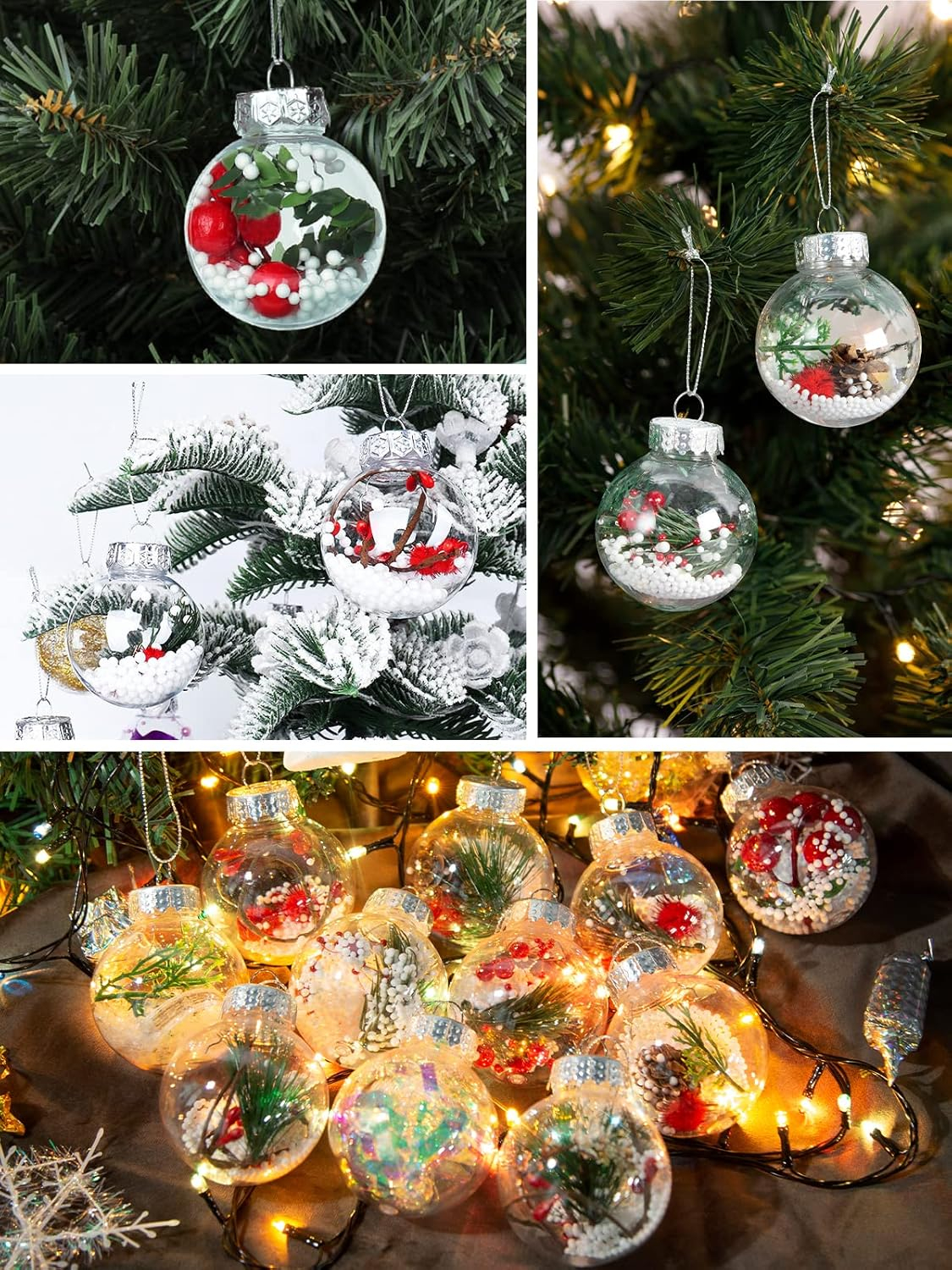 Decorațiuni de bauble de Crăciun. Minge de decor de Crăciun conține zăpadă artificială, flori, fructe de pădure mici, dulciuri, pene, frunze de brad și multe altele. Nu este potrivit doar pentru decorațiunile de Crăciun, ci și ca decor pentru pomul de Crăciun.