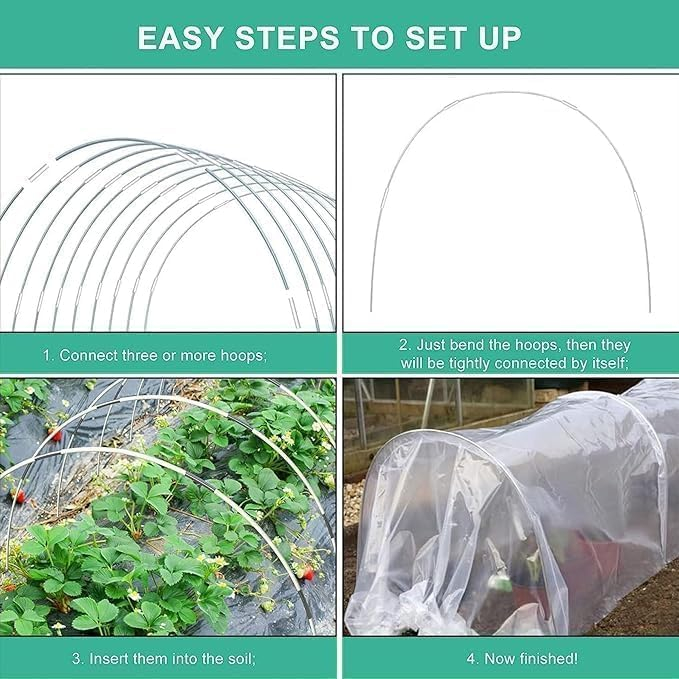 • Kitul de bricolaj pentru anvelope cu efect de seră include: 50 bucăți cadru de cerc cu diametru mare, 1 pereche de mănuși de lucru mănuși pentru femei, 30 de conexiuni, 30 de cleme de grădină și 30 de cuie la sol. Puteți combina cu 5 sau mai multe mize de grădină pentru a construi tunel de creștere a grădinii, cort mini de creștere, seră mică, sârmă de pui și arc de grădină pentru a vă satisface nevoile. Materiale de înaltă calitate: stratul exterior de fibră de sticlă al arcului tunelului de grădină este acoperit cu plastic, care este flexibil și nu se rupe ușor. Designul detașabil economisește mai mult spațiu și poate fi reutilizat. Arcadele de tuneluri de plante DIY: perfecte pentru cei care cultivă flori și legume și iubesc viața. Puteți combina cu 3, 4 sau chiar mai multe mize de grădină pentru a construi diferite dimensiuni, cum ar fi tunelul de creștere a grădinii, cortul mini-cresc, sera mică, sârmă de pui și arc de grădină pentru a vă satisface nevoile. Aplicație largă: ideală pentru curți, grădini de legume și paturi de grădină ridicate. Anvelopa cu efect de seră pentru acoperirea plantelor este potrivită pentru utilizarea în interior sau în aer liber, arcadele de tunel cu efect de seră sunt cadoul perfect pentru iubitorii de grădină.