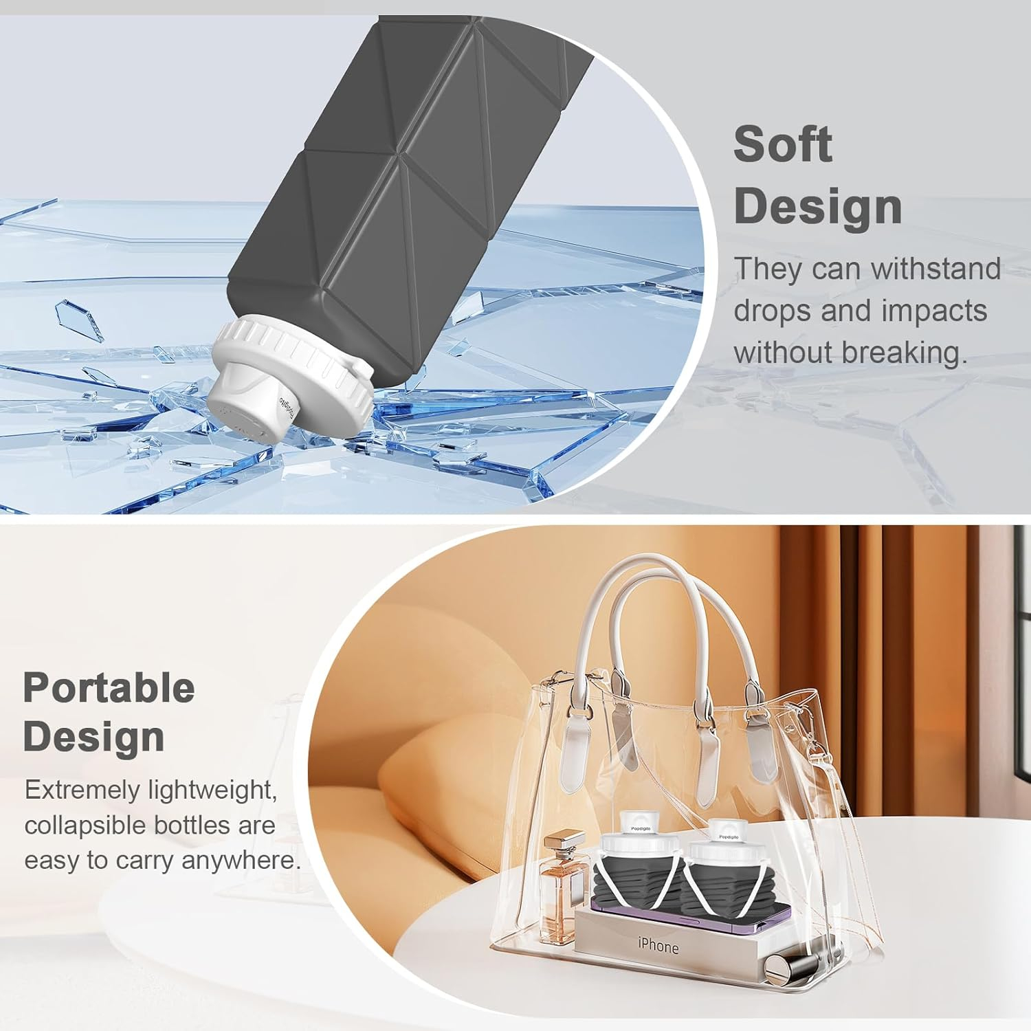 • SIGUR ȘI REUTILIZABIL: Fabricat din silicon 100% fără alimente BPA, aceste sticle de apă reîncărcabile nu sunt sigure doar pentru utilizarea zilnică, ci și construite pentru a dura. Bucurați-vă de o hidratare sănătoasă, reducând în același timp deșeurile de plastic de unică folosință.
