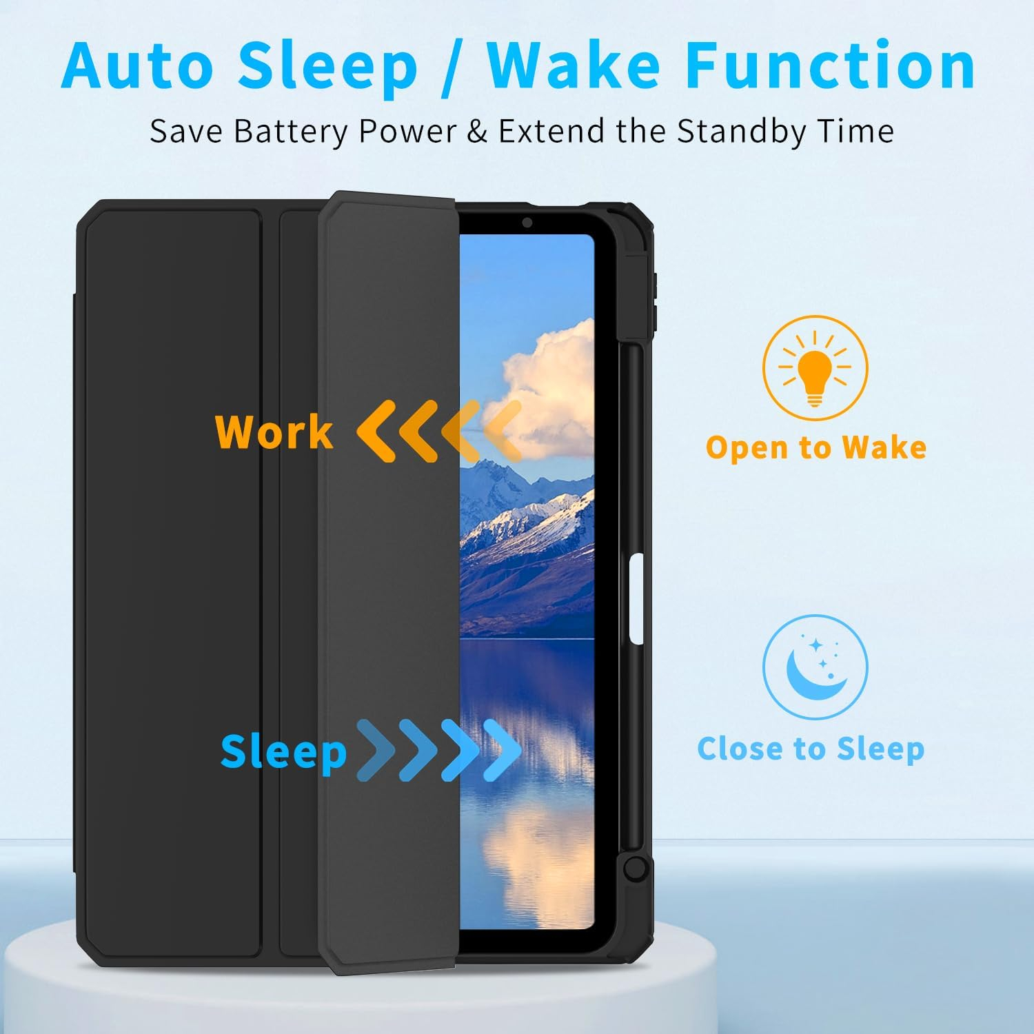 • Urmăriți / somn automat: atașați la iPad Pro caz 11 inch 2024 cu o bandă magnetică integrată, astfel încât carcasa rămâne ferm închisă. Capacul inteligent suportă funcția automată de trezire / somn și face ca iPad Pro 11 M4 2024 să se deschidă automat să funcționeze și să se culce. Economisește mai multă energie și prelungește durata de viață a bateriei.