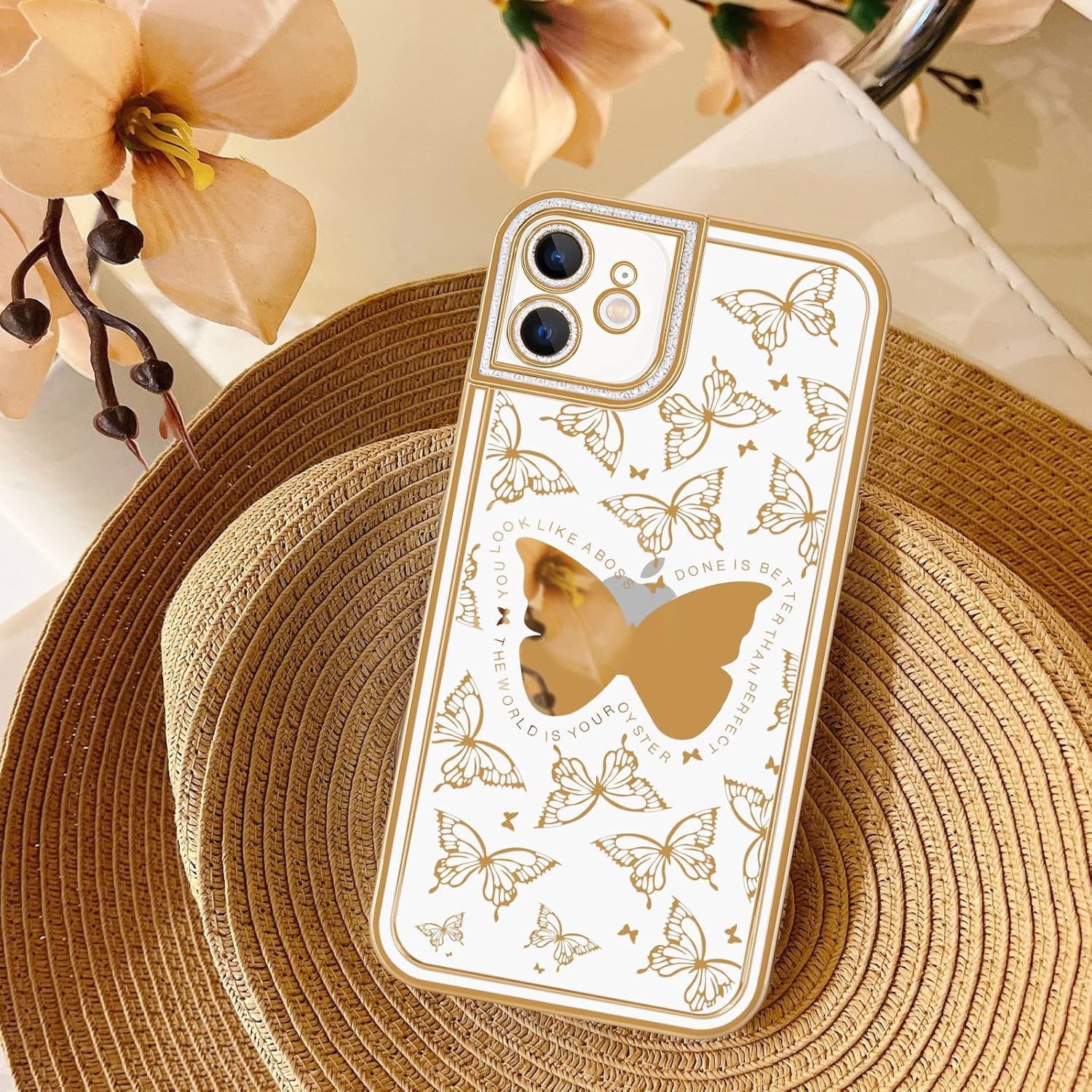 [Design de fluturi fluturași] Fluturii mobilizați sunt imprimați pe carcasă, făcând telefonul mai elegant și mai atrăgător. Cutiile telefonice transparente pot, de asemenea, să arate culoarea originală a telefonului. În plus, fluturele mare din mijloc poate fi folosit ca oglindă, vă puteți verifica machiajul oricând și oriunde.