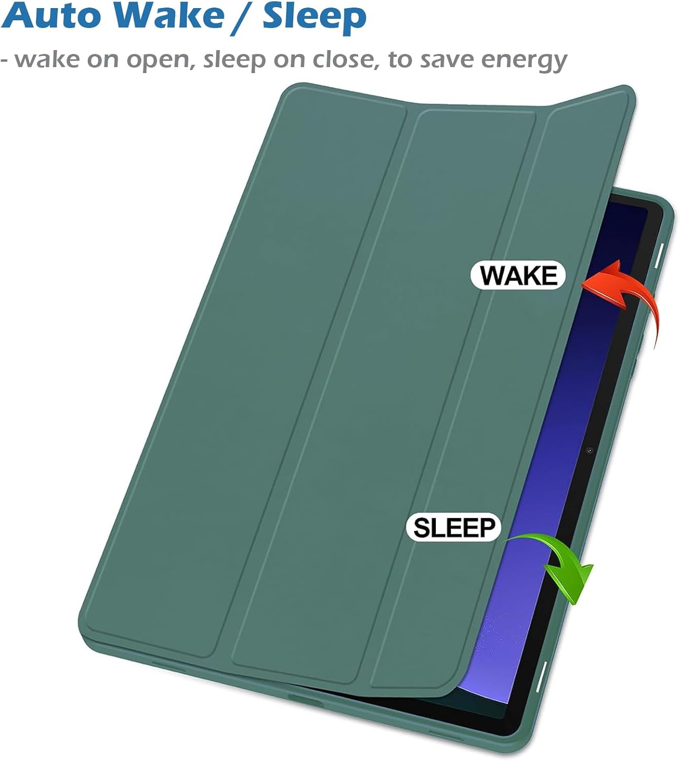 • ✔️u-Auto Sleep/Wake Function- Bandă magnetică construită în capacul din față, are trezire automată/dormit. Odată ce deschideți sau închideți carcasa iPad, senzorul magnetic inteligent se va trezi sau va pune tableta la somn. Deci nu irosești energie și extinzi timpul de așteptare al bateriei.