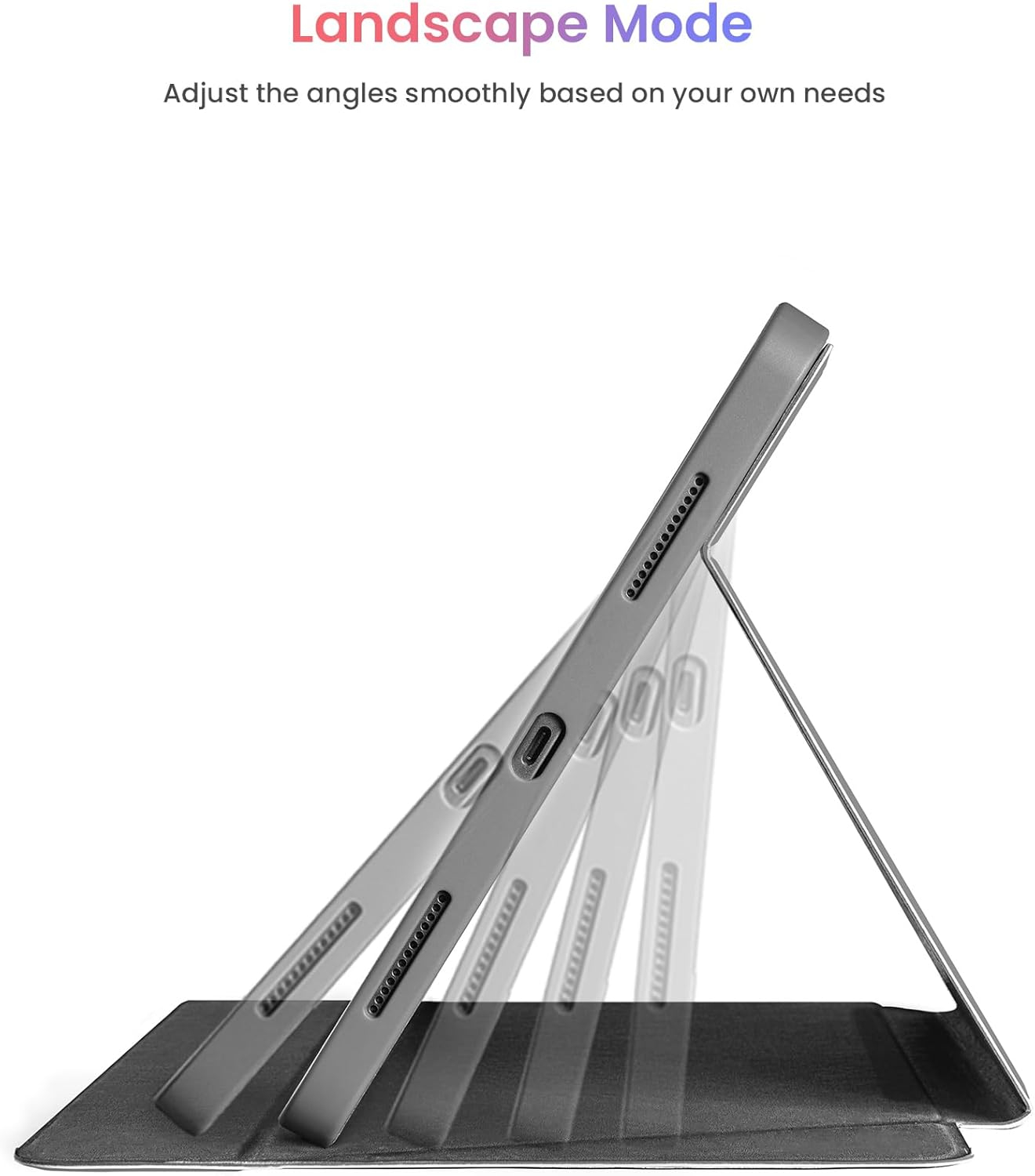 • Unghiuri diferite, experiențe diferite: Carcasa puternică de aer iPad are un mod de utilizare 3. Modul portret unic vă eliberează mâinile atunci când utilizați Facetime, facilitând citirea unui document sau a unui comic. Modul Sketch oferă un unghi adecvat pentru a-l face confortabil atunci când faceți note sau schițe. Modul de peisaj este convenabil pentru ajustarea unghiurilor ecranului fără probleme în funcție de propriile nevoi