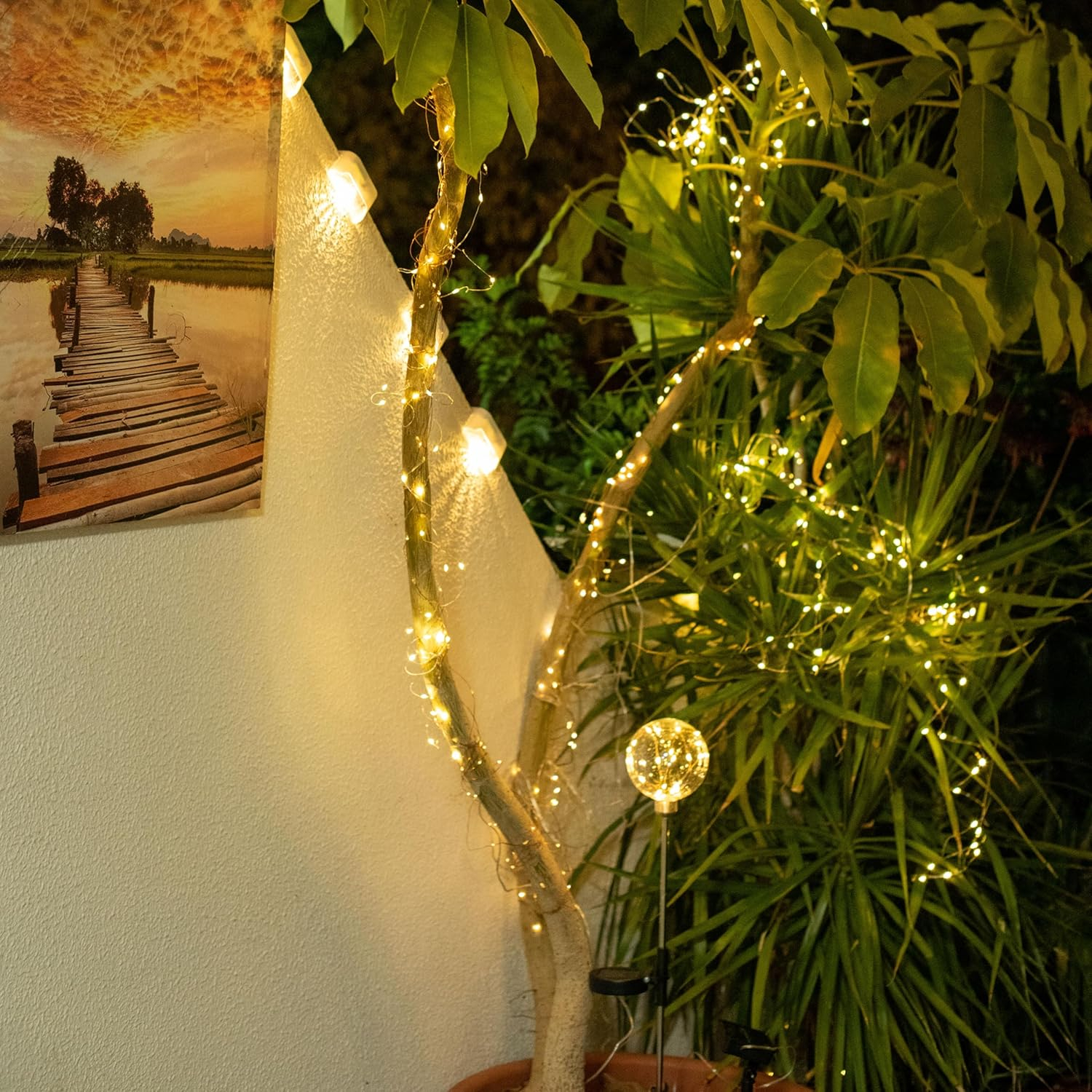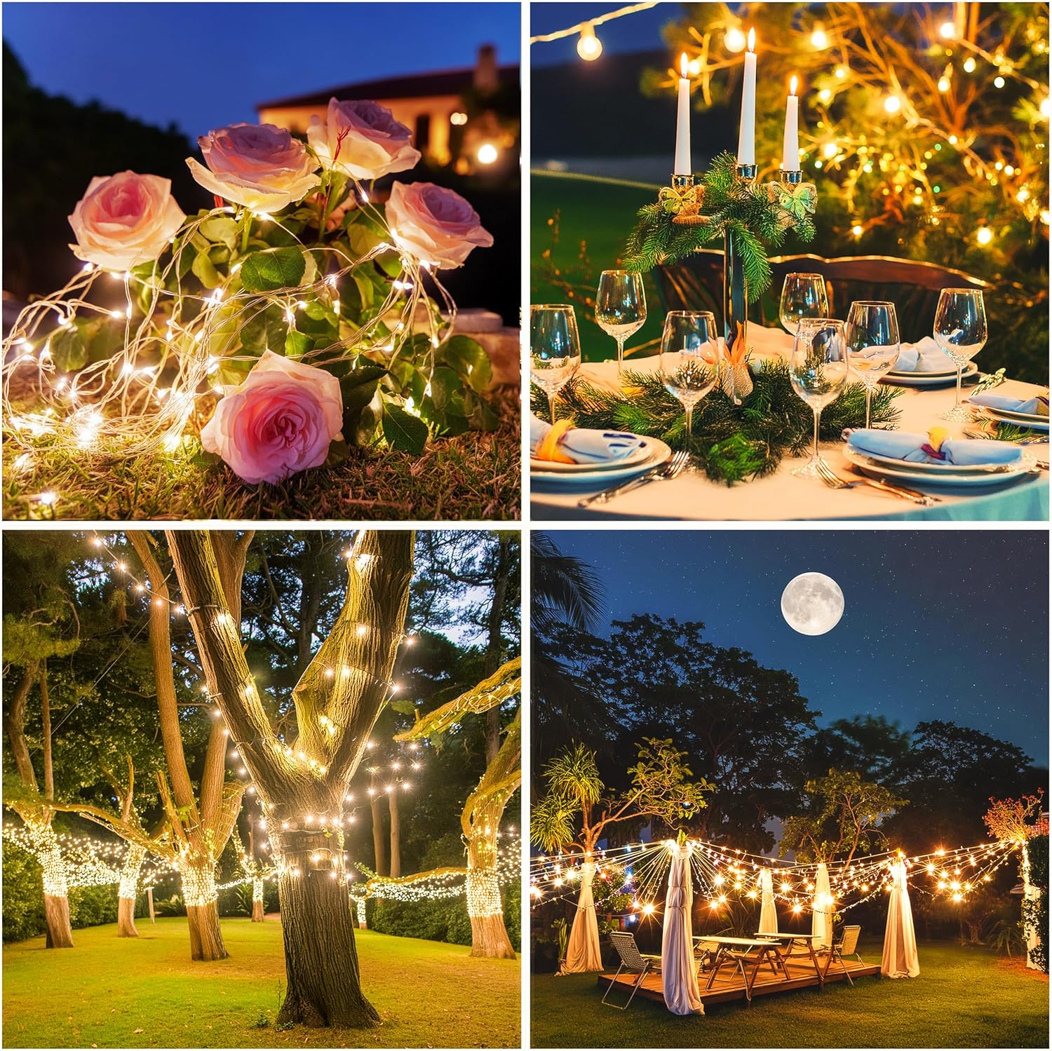 Energia solară: Luminile solare de șir de aer liber sunt alimentate cu energie solară, cu o baterie de 800mAh, se pot lumina timp de 6-10 ore pe timp de zi, după ce au fost încărcate cu lumina directă a soarelui.