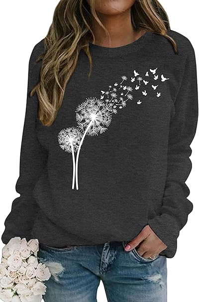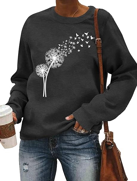 • Caracteristici: Acest pulover este decorat cu un motiv de păpădie și păpădie. Are un gât clasic de echipaj și mâneci lungi. Motivele naturale și florale blânde îi conferă un aspect proaspăt și elegant