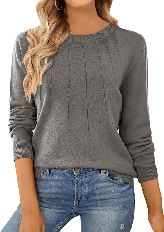 Pulover moale pentru femei, pentru iarnă, toamnă. Țesătură moale și ușoară / decolteu tricotat rotund cu mâneci lungi, întinzându-se, vă ține cald și cu o singură culoare nu este depășit niciodată
