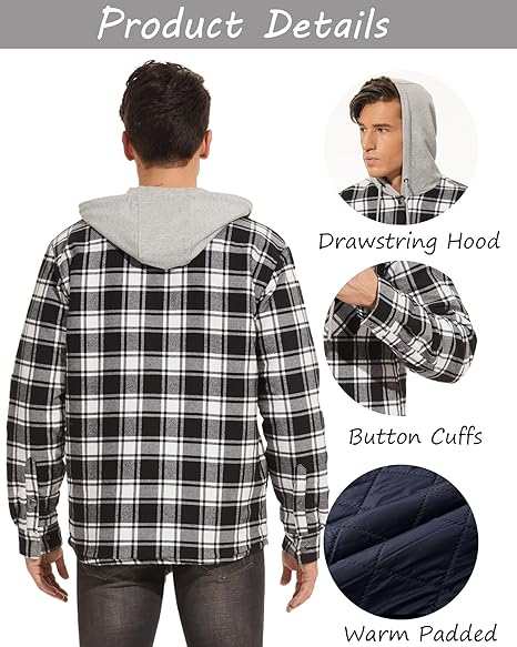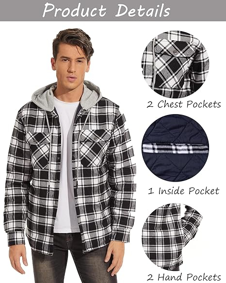 Căptușeala matlasată și groasă din lână retine temperatura corpului în timpul iernii. Designul în carouri face cămașa mai la modă.