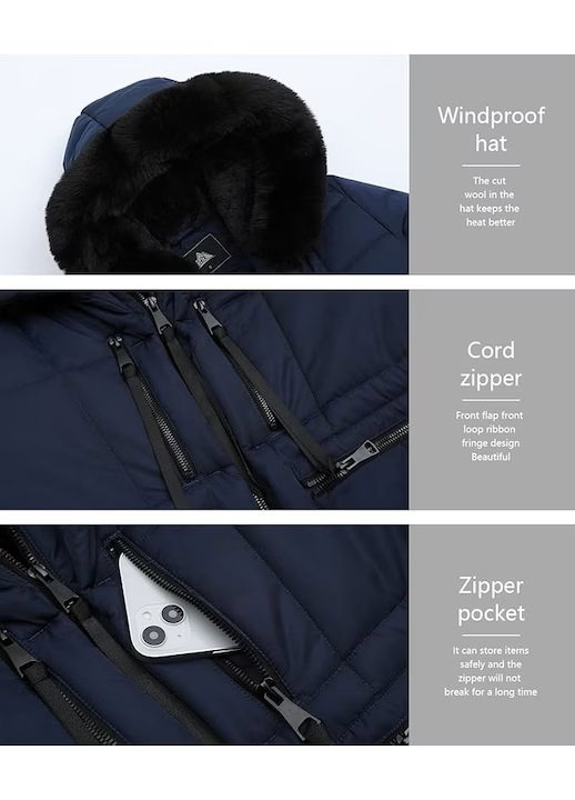 Buzunare multiple – 2 buzunare mari cu fermoar, 2 buzunare la piept si 2 laterale, ideale pentru telefon, chei, portofel sau pentru a-ti mentine mainile calde.