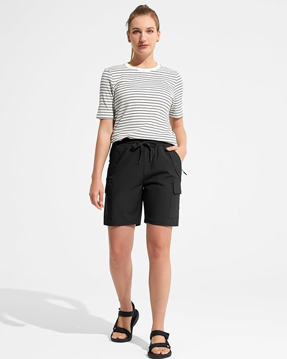 Pantaloni sport respirabili pentru femei, cu buzunare si talie elastica, scurti negri 2XL