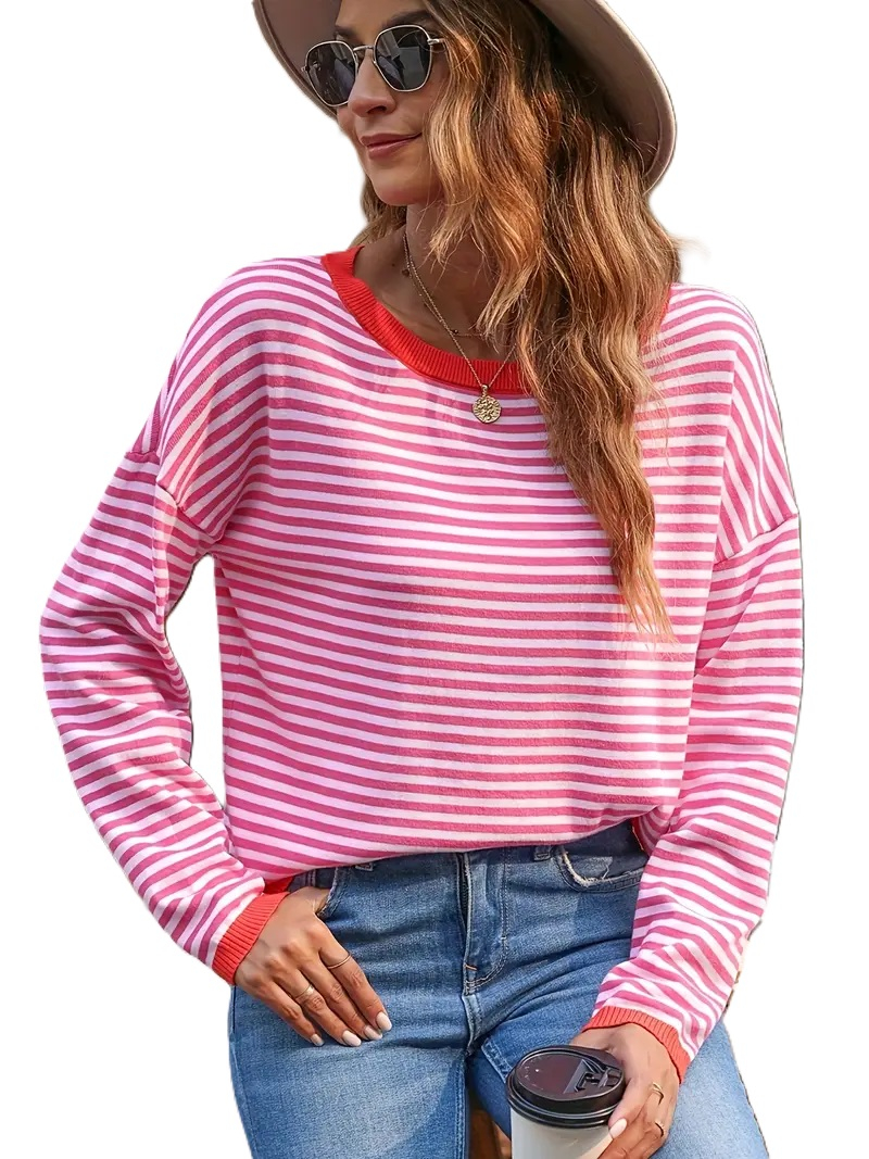 Bluza larga pentru femei, pulover fin, dungi rosii L