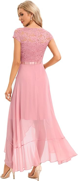 Material: 94% nailon și 6% elastane. Această rochie de domnișoară de onoare este realizată din dantelă de înaltă calitate și este realizată din țesătură de șifon de înaltă calitate, care se simte moale și confortabilă fără a se încreți.
