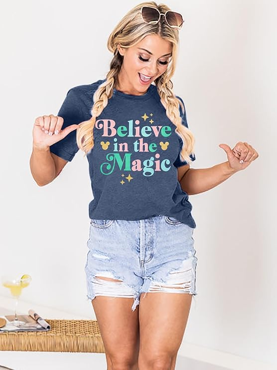 Tricou de vară pentru femei, albastru Believe in The Magic S