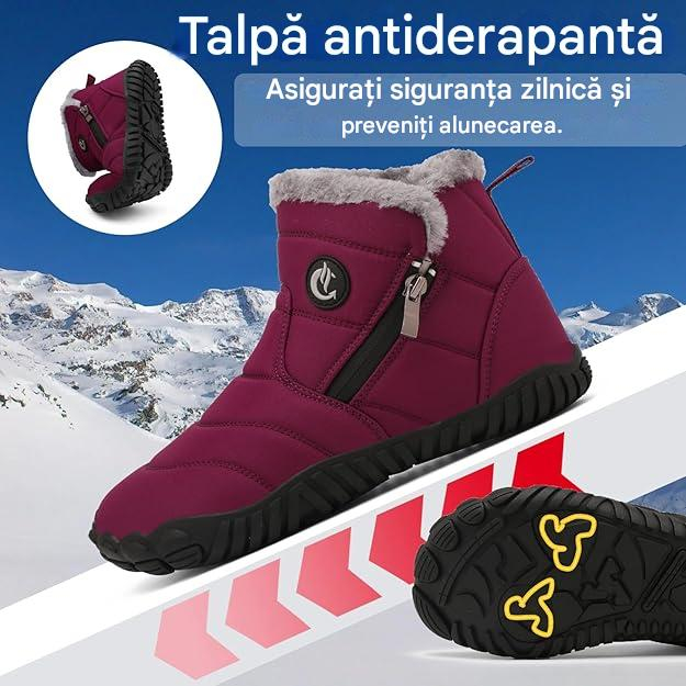 Talpa este proiectată cu atenție, iar talpa de cauciuc are o structură antiderapantă, crește frecarea cu solul și permite mersul stabil și confortabil pe suprafețe umede și netede, cum ar fi zăpada și gheața.