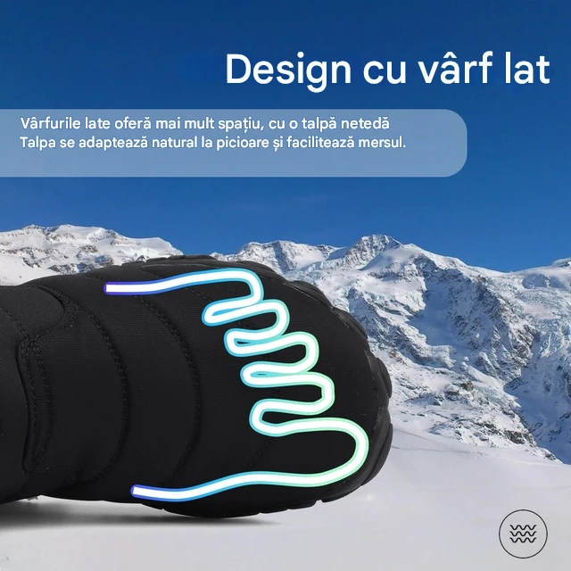 Talpa este proiectată cu atenție, iar talpa de cauciuc are o structură antiderapantă, crește frecarea cu solul și permite mersul stabil și confortabil pe suprafețe umede și netede, cum ar fi zăpada și gheața.