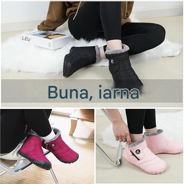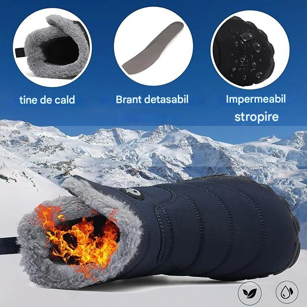 Cizmele noastre de zăpadă sunt echipate cu tehnologie de tratare impermeabilă care rezistă eficient stropilor de apă, blocurilor de fulgi de zăpadă care cad și apa topită de zăpadă și se asigură că picioarele dvs. rămân uscate în orice moment.