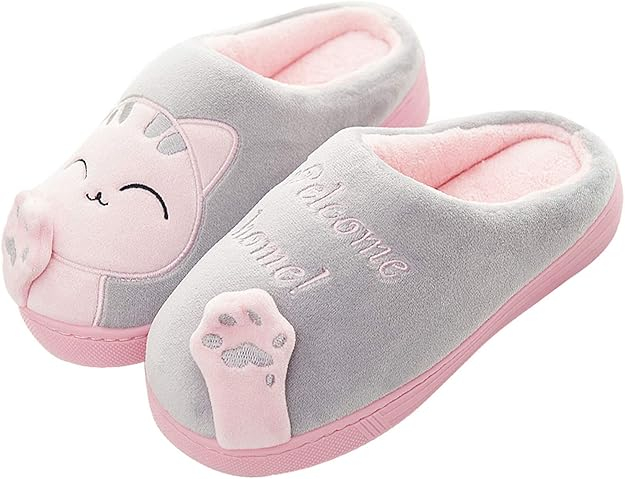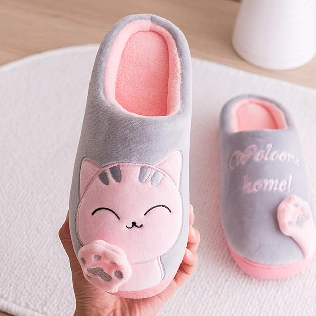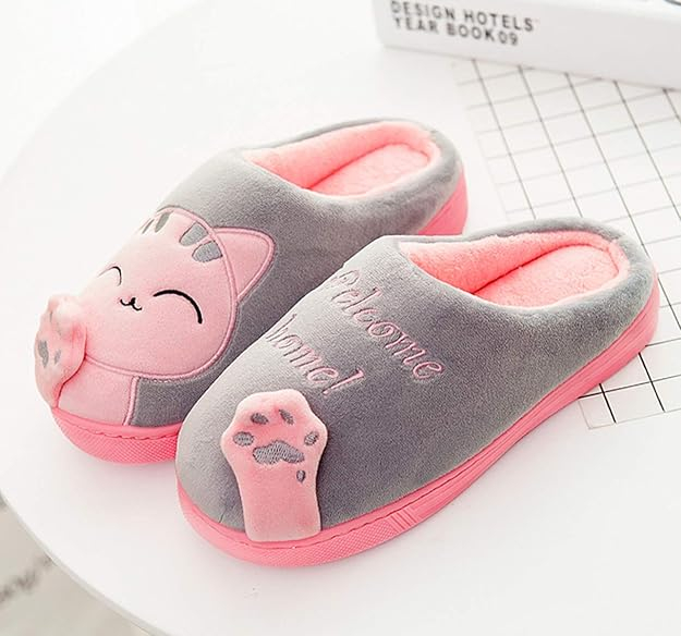 Țesătură confortabilă, cu modele drăguțe de broderii pisicilor de origine animală pe stratul exterior de papuci de bumbac, moale și prietenos cu pielea, un pantof de iarnă la modă și jucăuș.