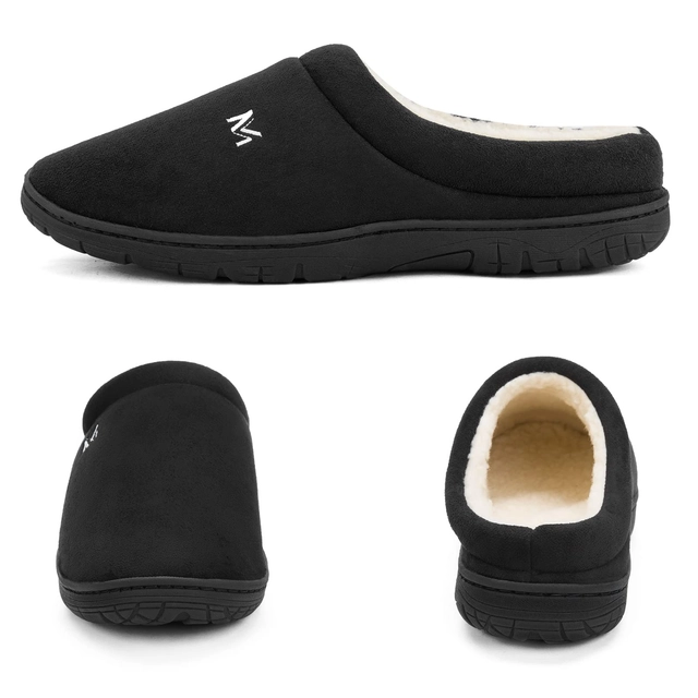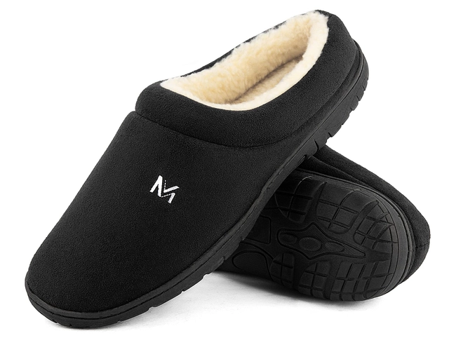 WARM & WONDERFUL - Degetul de deget de la picior, închis, papucii de casă este căptușit cu lână pufoasă pentru căldură relaxantă; stilul simplu de diapozitiv îl face un pantof