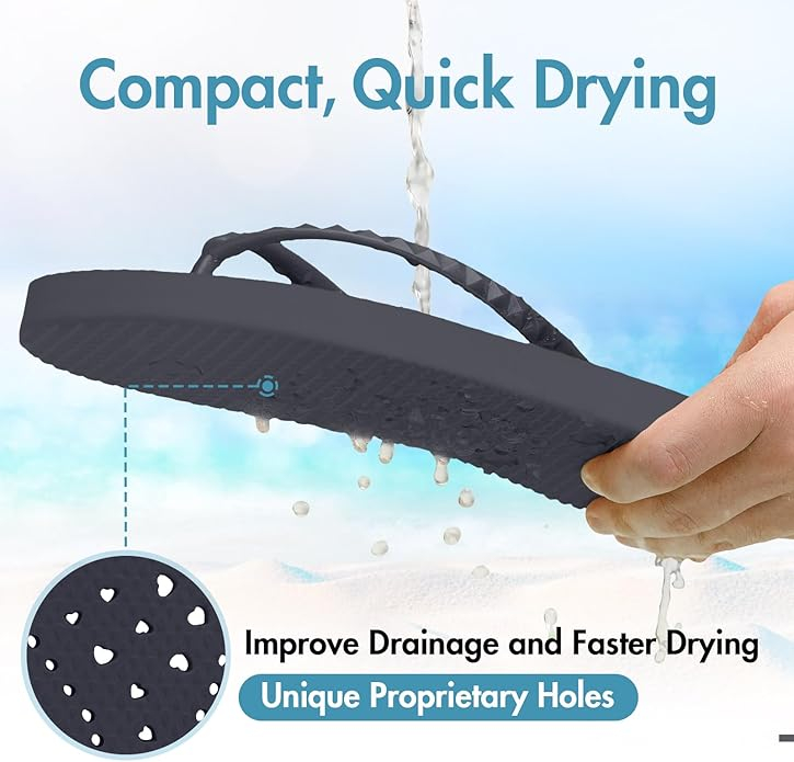 Utilizarea mai multor ocazii: designul unic al găurilor de scurgere și tălpile anti-alunecare vă protejează picioarele oriunde mergeți - dușuri publice, săli de sport, camere de aburi, cămine, tabere, piscine sau vestiare.