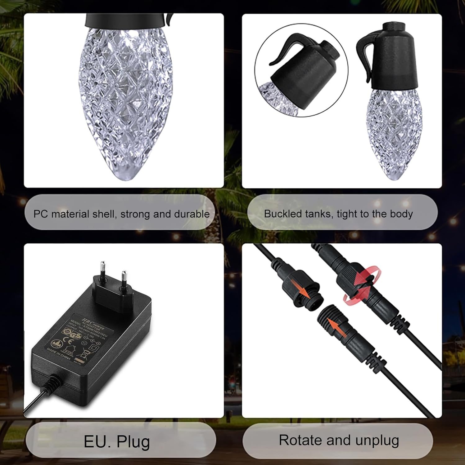 - Pachetul include: lumini de coarde, adaptor de alimentare etc.