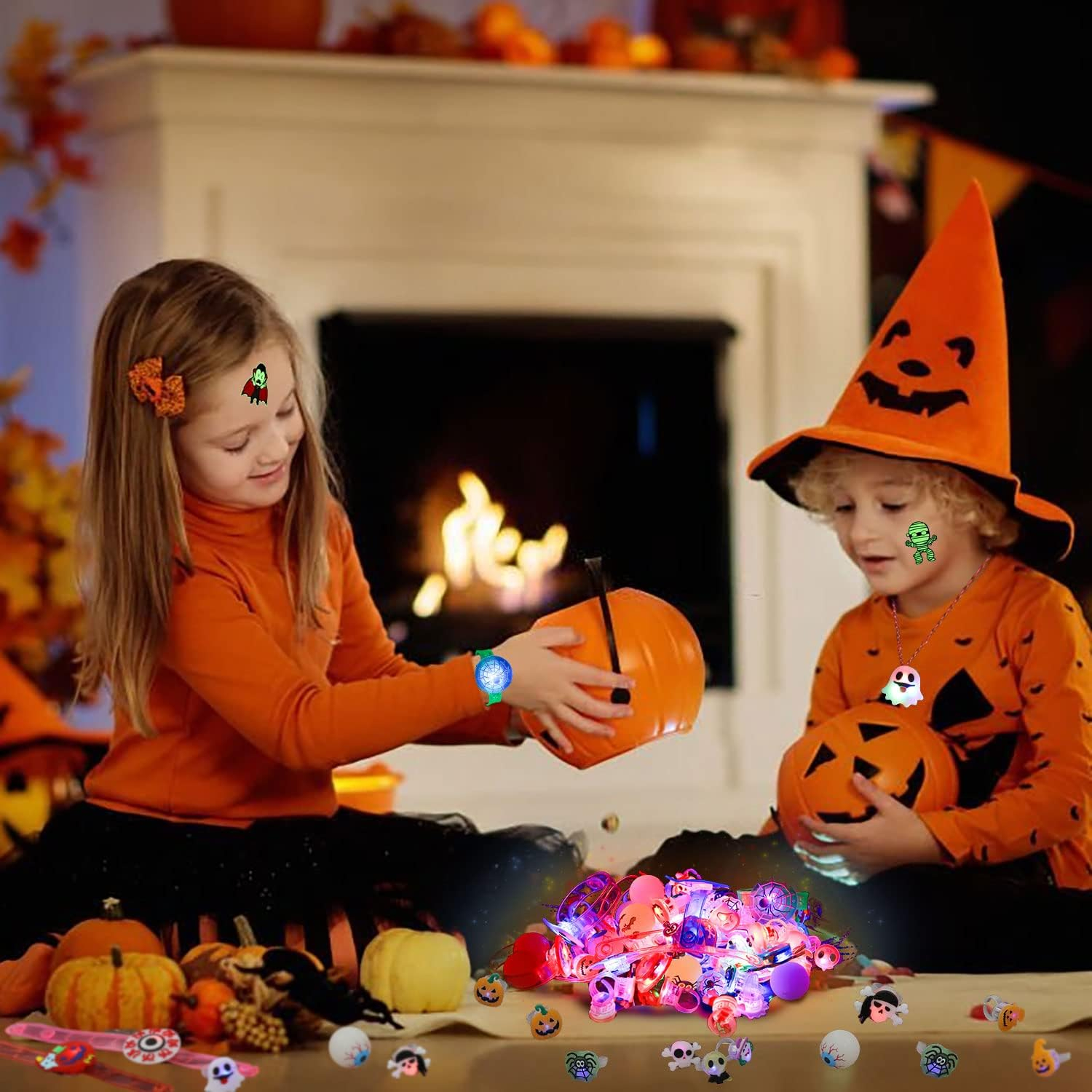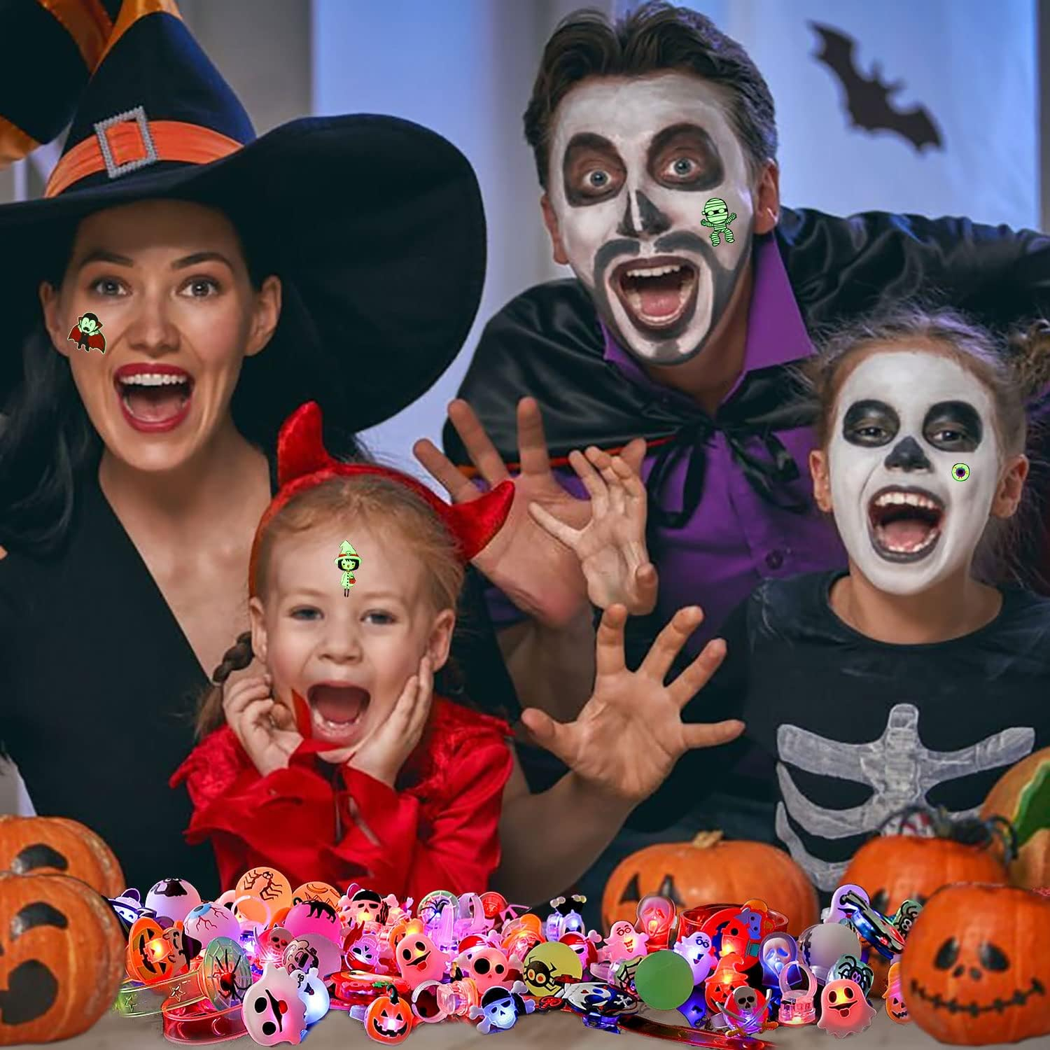 Când vine Halloween-ul, cu excepția decorării camerelor, adulții și copiii sunt dornici să-și pună costume înfricoșătoare și să se alăture petrecerii lor de Halloween. Fără nici o îndoială, decorarea lor este, de asemenea, un must-have! Ei înfig autocolantele de la Halloween, pun pe inele LED de Halloween, poartă colierul de Halloween și brățara, apoi poartă bilele de Halloween și își găsesc prietenii pentru a crea ceva distracție! Haide! Ai fi cea mai strălucitoare persoană la petrecerea de Halloween!