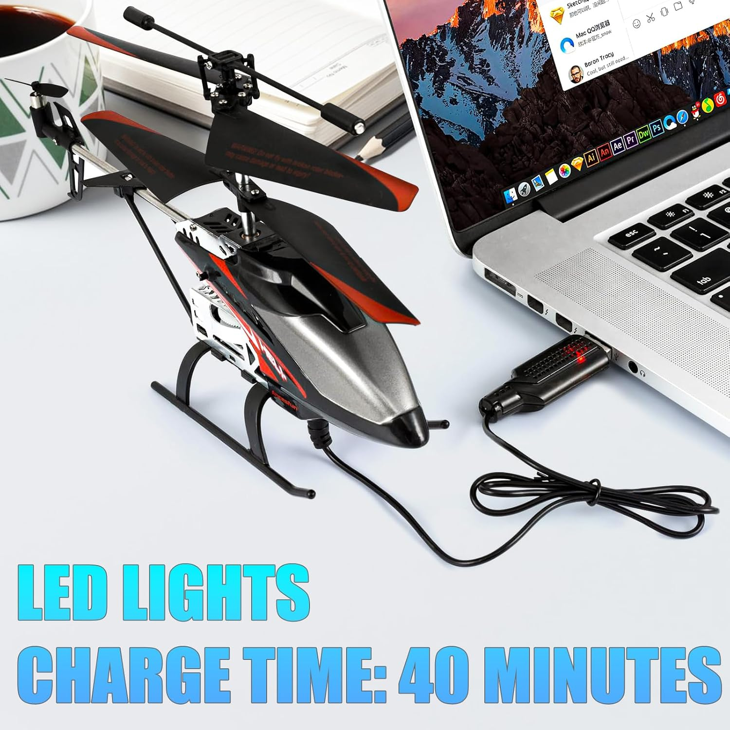 Durata zborului este de maximum 6-8 minute, iar timpul de încărcare este de aproximativ 90 de minute (închideți elicopterul RC la încărcare).
