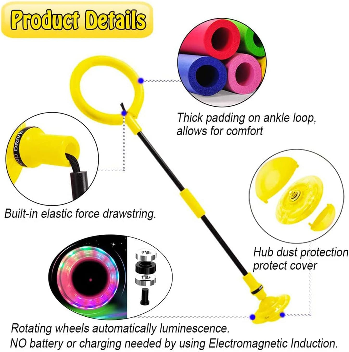 • LED încorporat: Flash (design inductiv), roata de derulare se aprinde automat și emite lumină, mai ales pe timp de noapte este foarte atrăgătoare. Adulții se pot juca și cu copiii. Acesta este un joc foarte distractiv și sănătos, care poate îmbunătăți relația dintre tine și copilul tău!