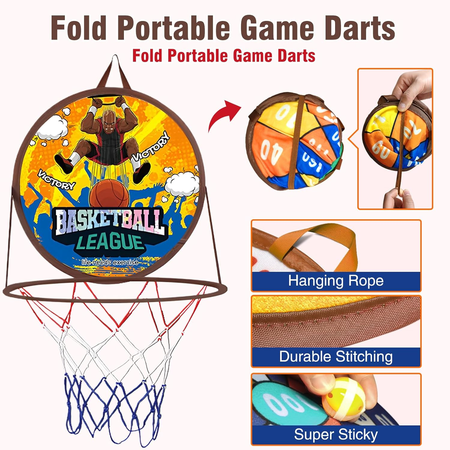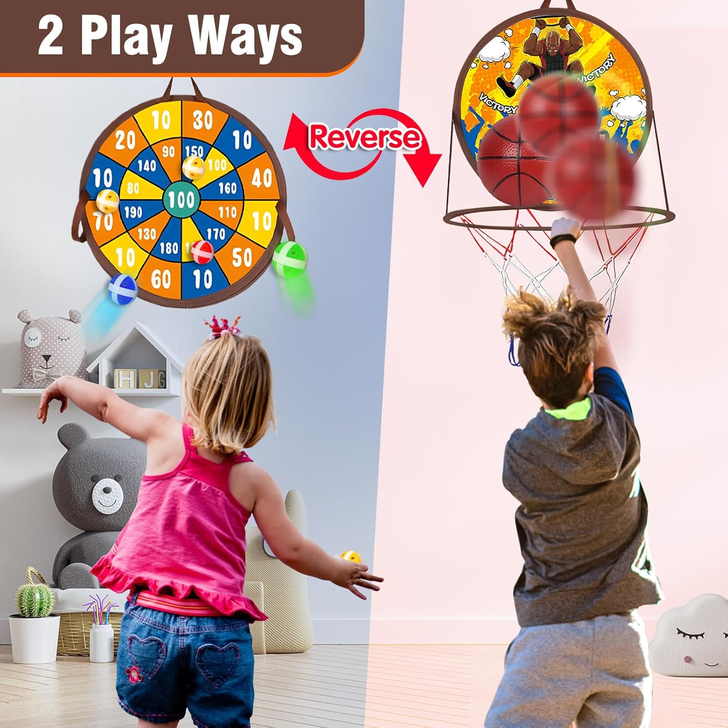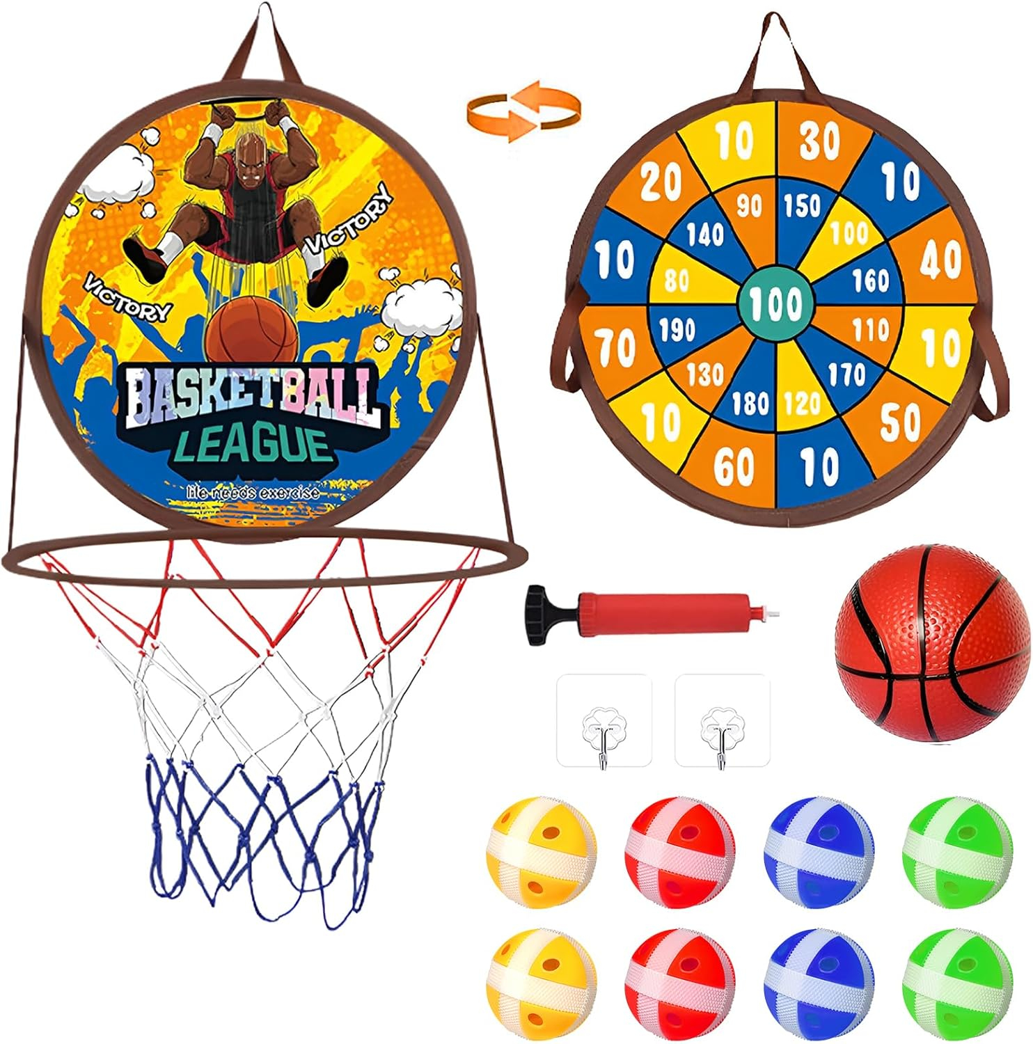 Cea mai bună jucărie de agrement pentru interior și exterior - vine cu 2 cârlige și sanie adezivă Indiferent dacă este în interior sau în aer liber, cercul de baschet cu dartboard poate fi ușor atârnat în locurile dorite pentru a juca. Este un joc ideal pentru a distra copiii nesfârșiți în timpul întâlnirilor de familie sau a activităților în aer liber